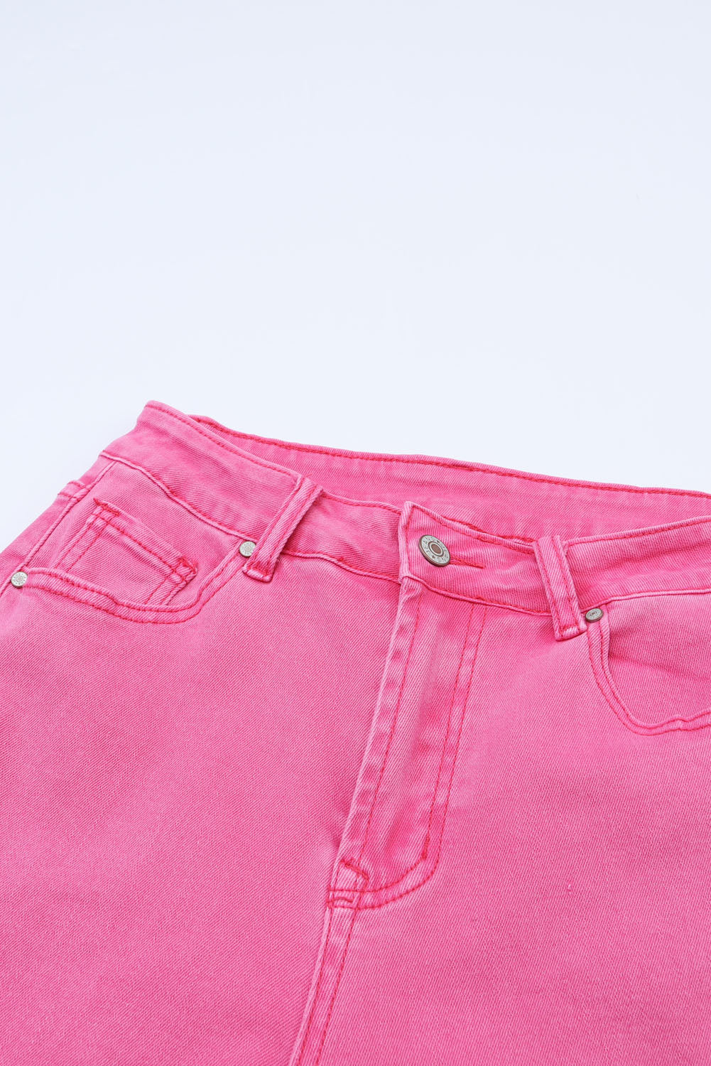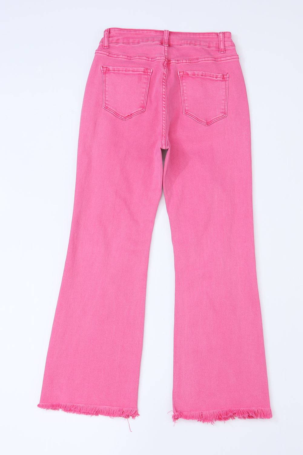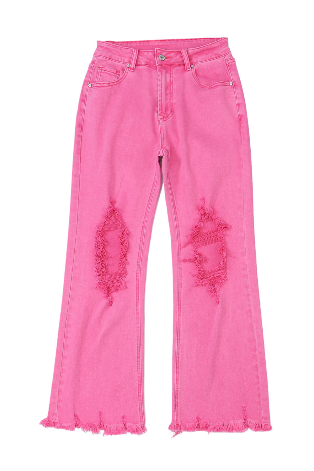 Pink Distressed Holes Raw Edge Cropped Flare Jeans