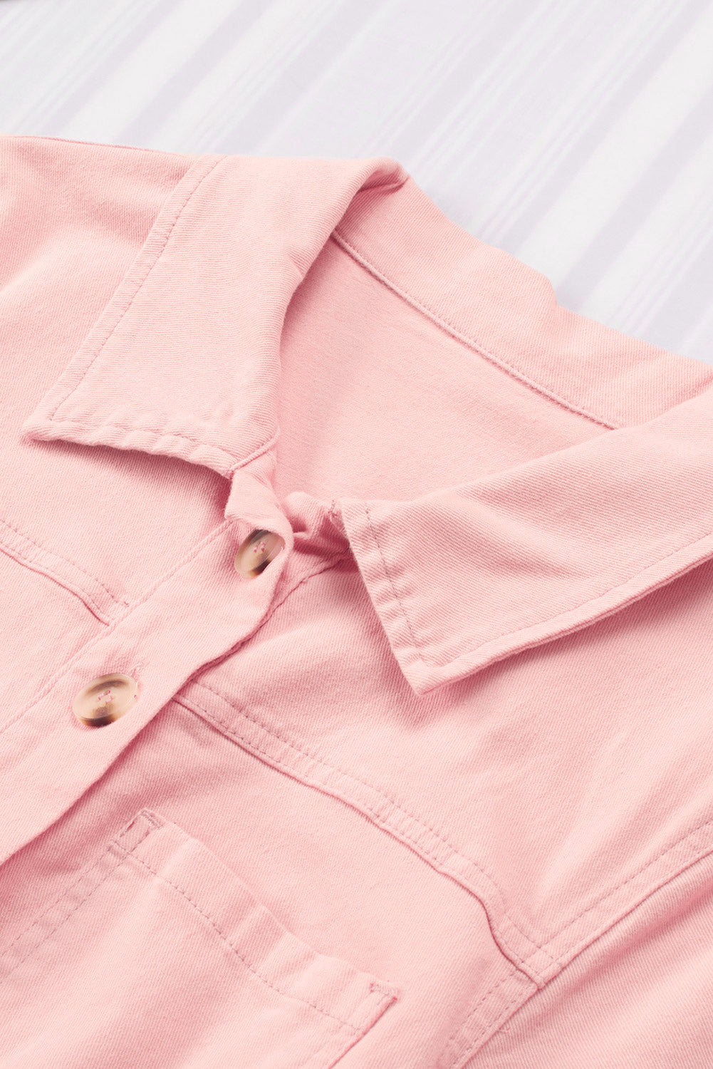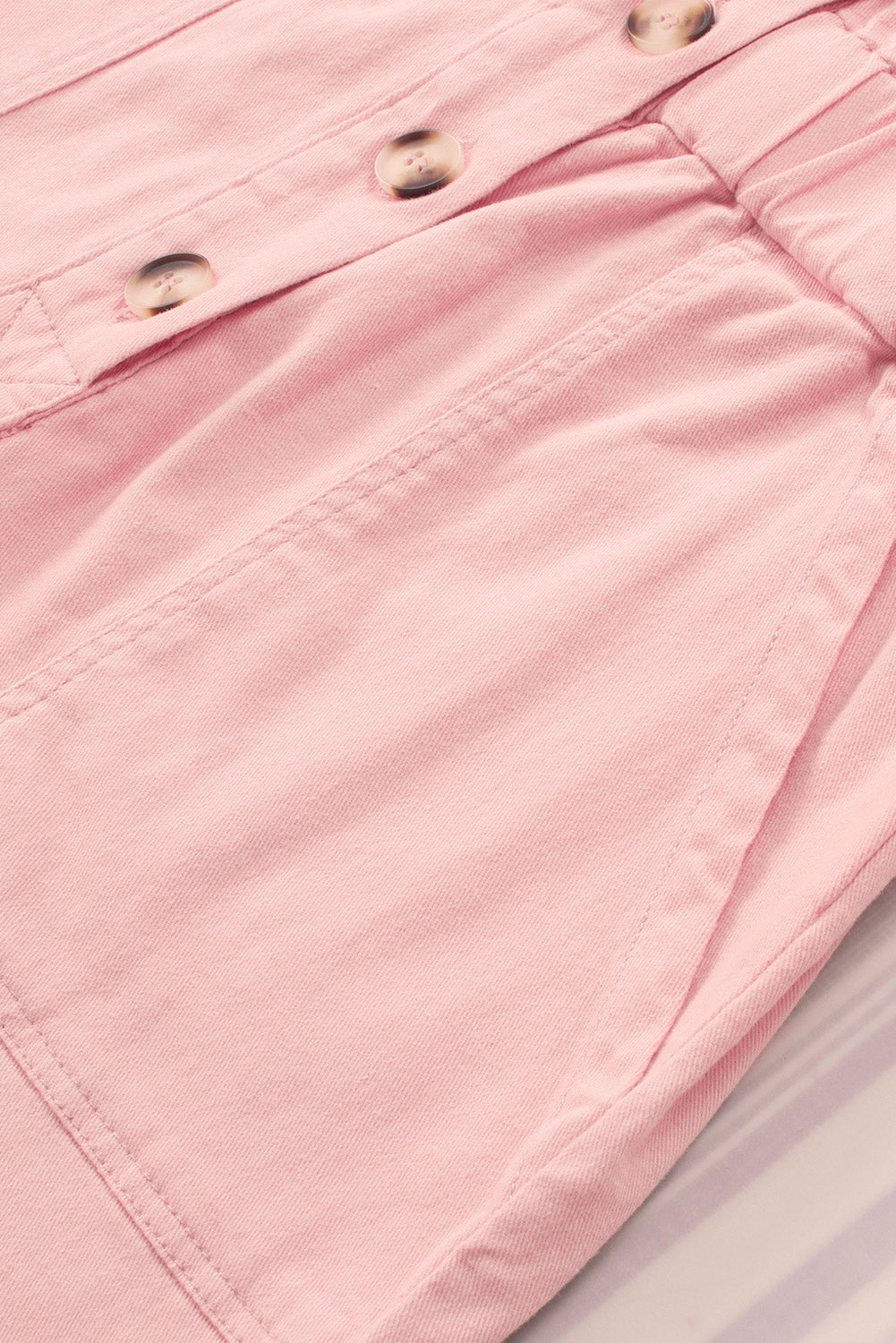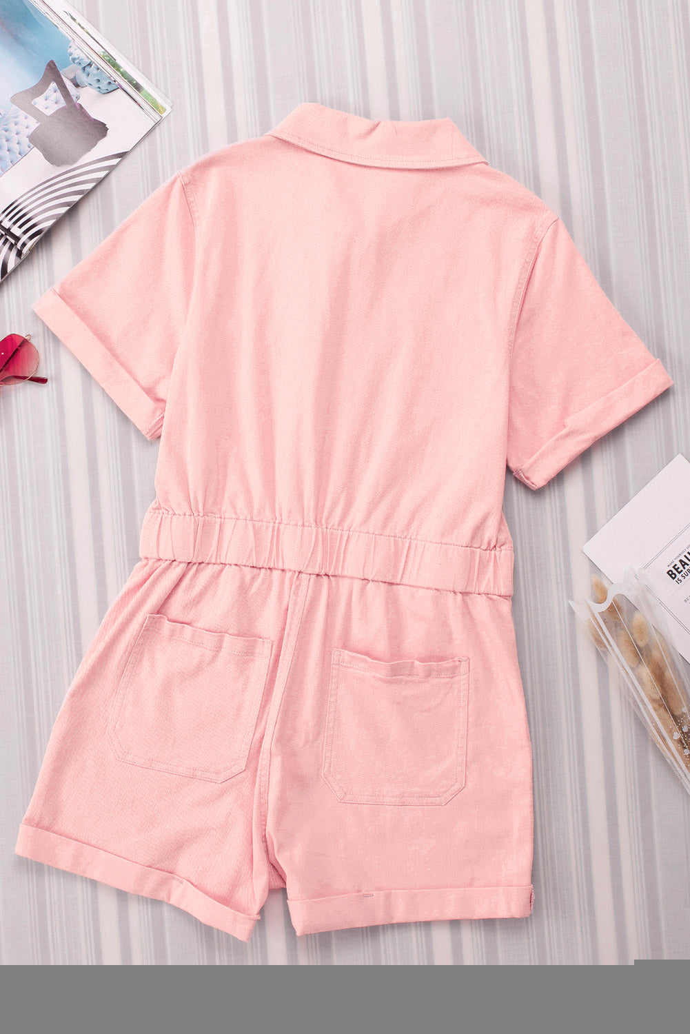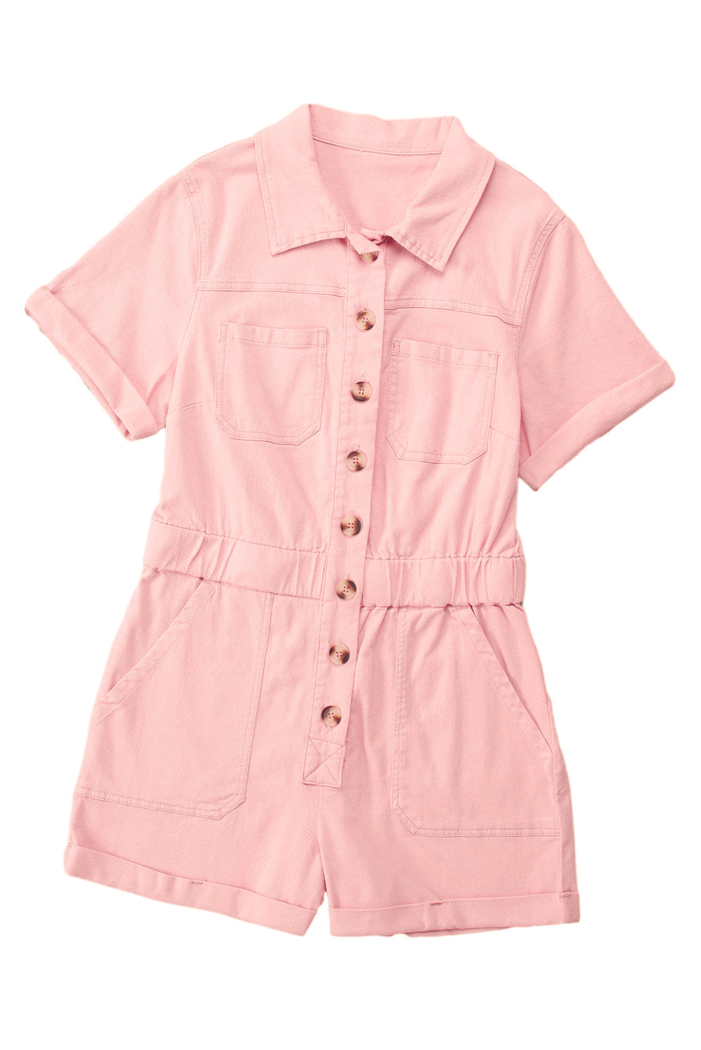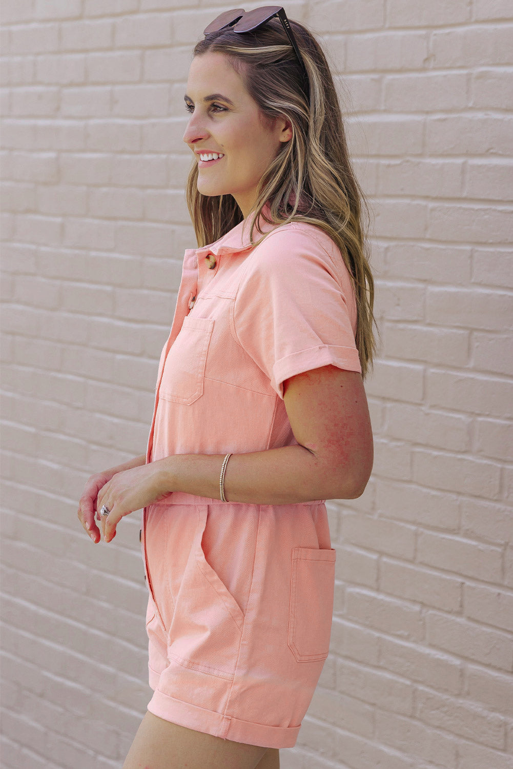 Pink Pocketed Button Down Denim Romper