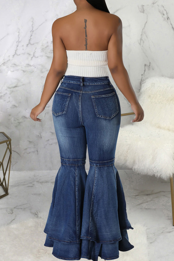 Fashion High Waist Double Layer Flared Jeans