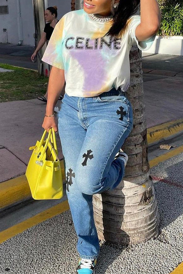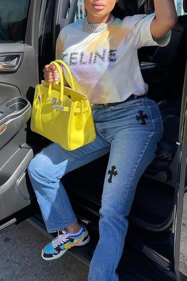 Fashion Low Rise Embroidered Hollow Stretch Skinny Jeans