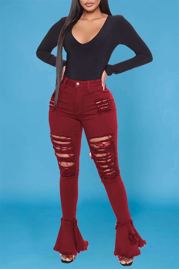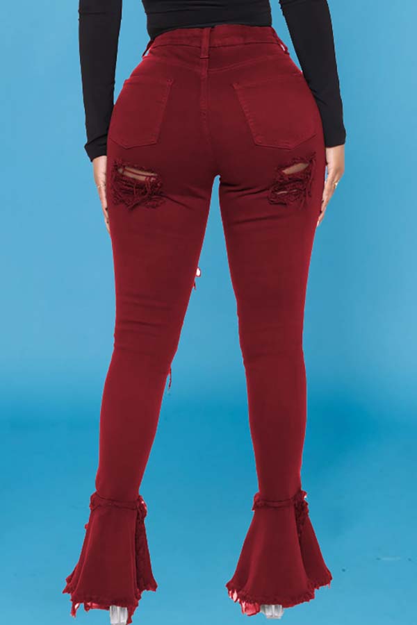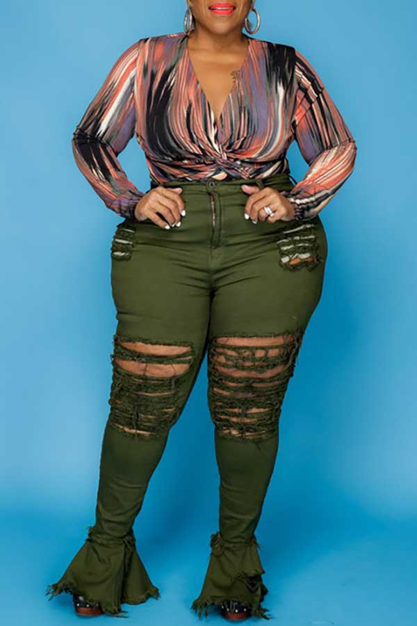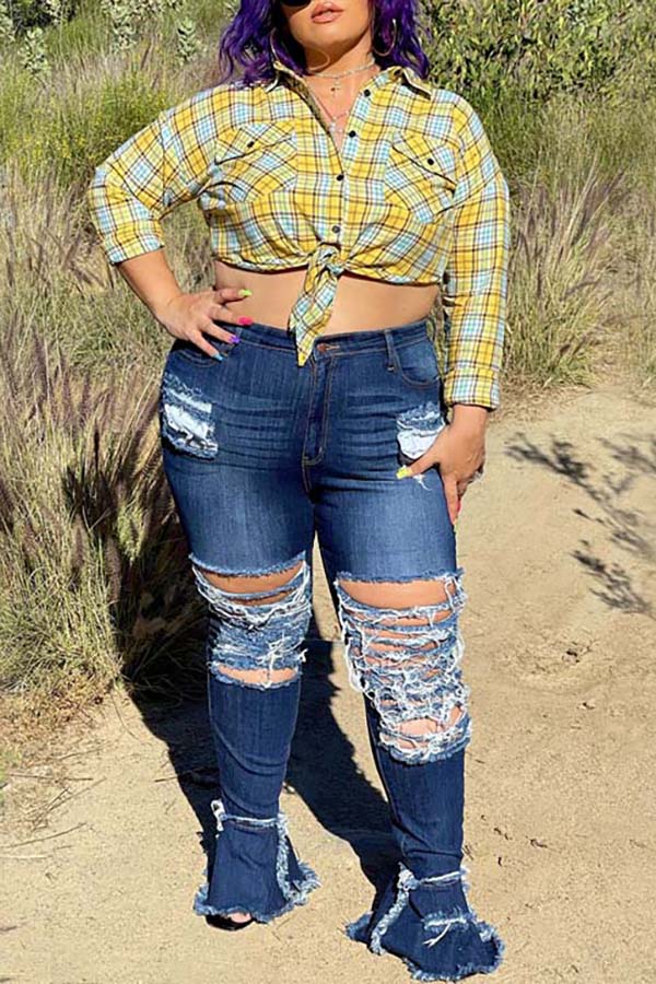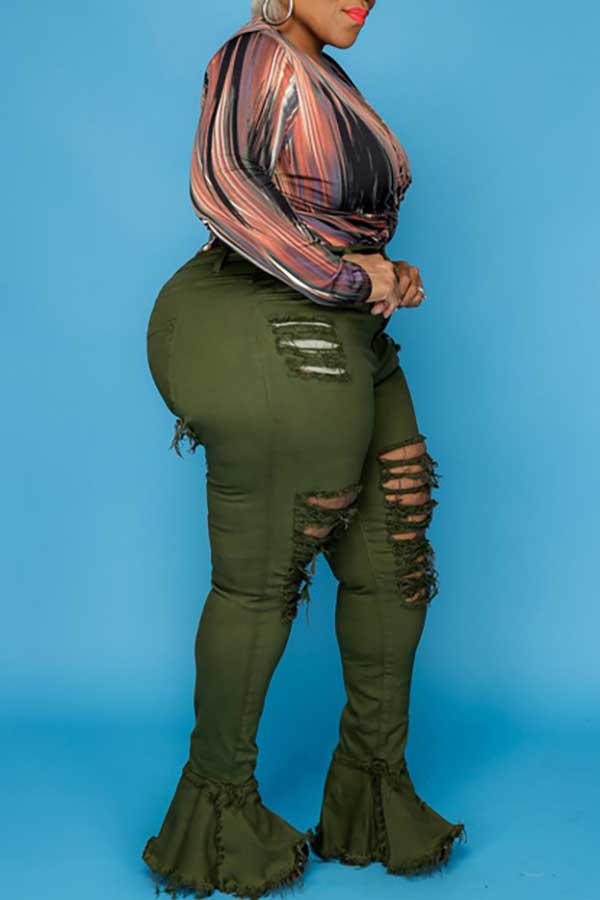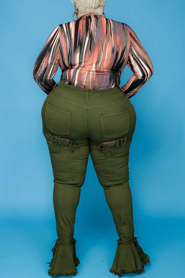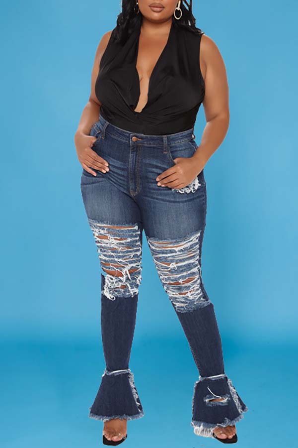 Fashion Plus Size High Rise Ripped Flared Jeans