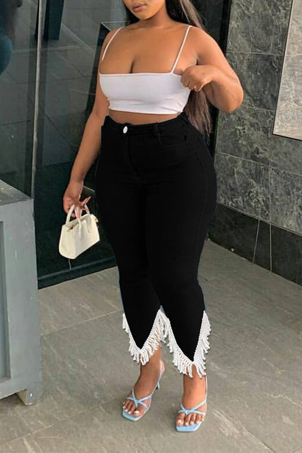 Fashion Skinny Fit Stretch Tassel High Waist Jeans