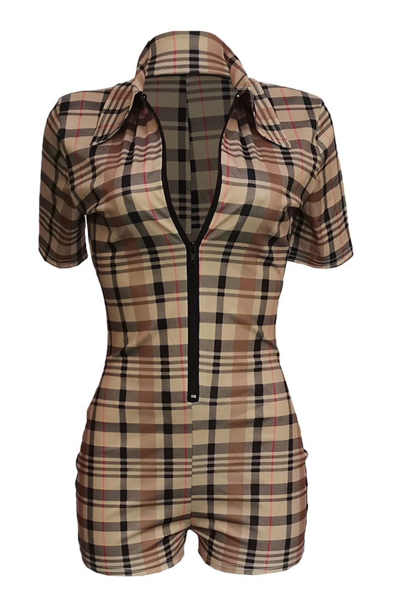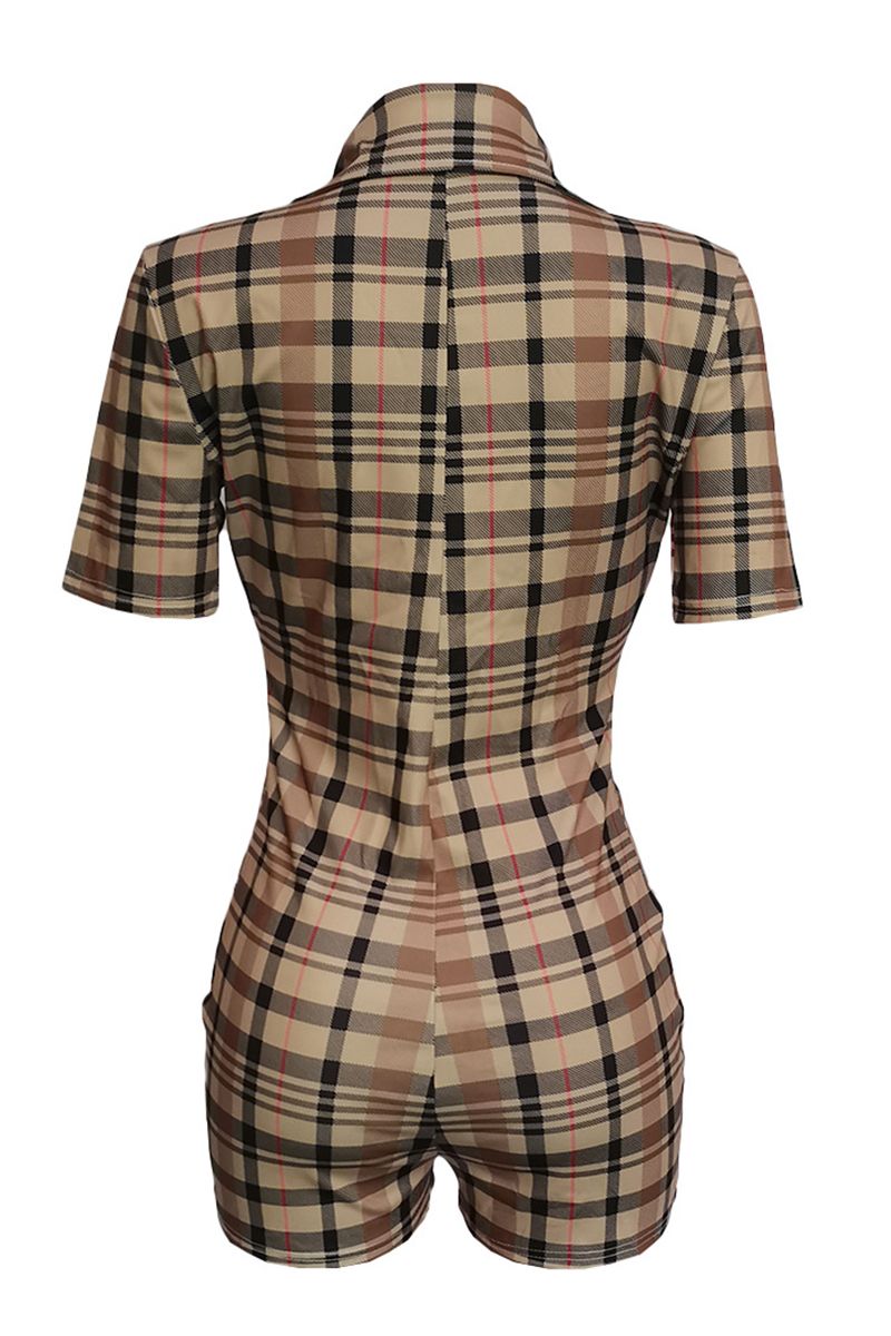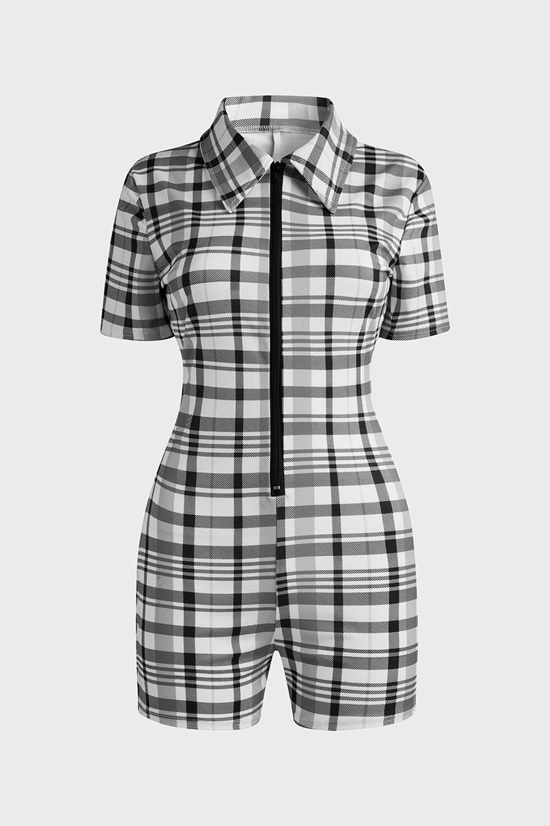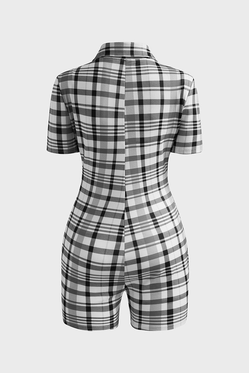 Plaid Zip Front Form Fitted Romper