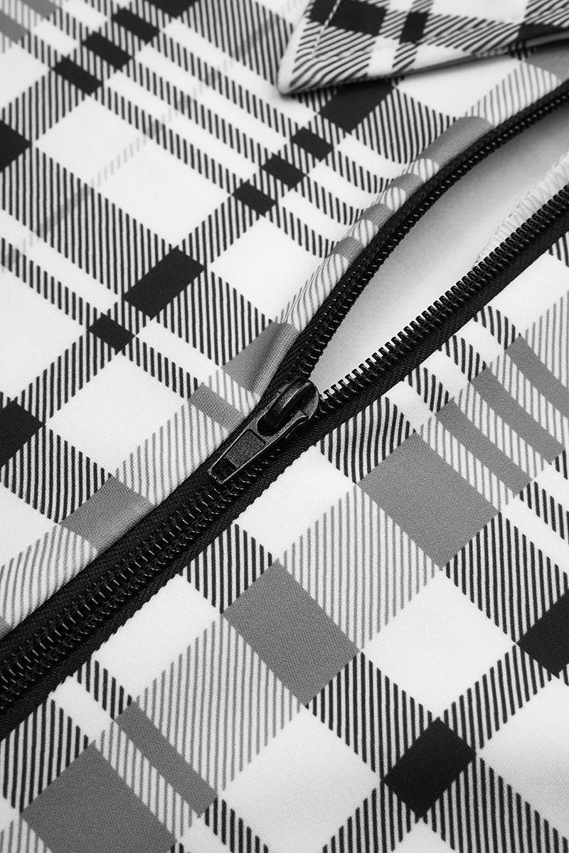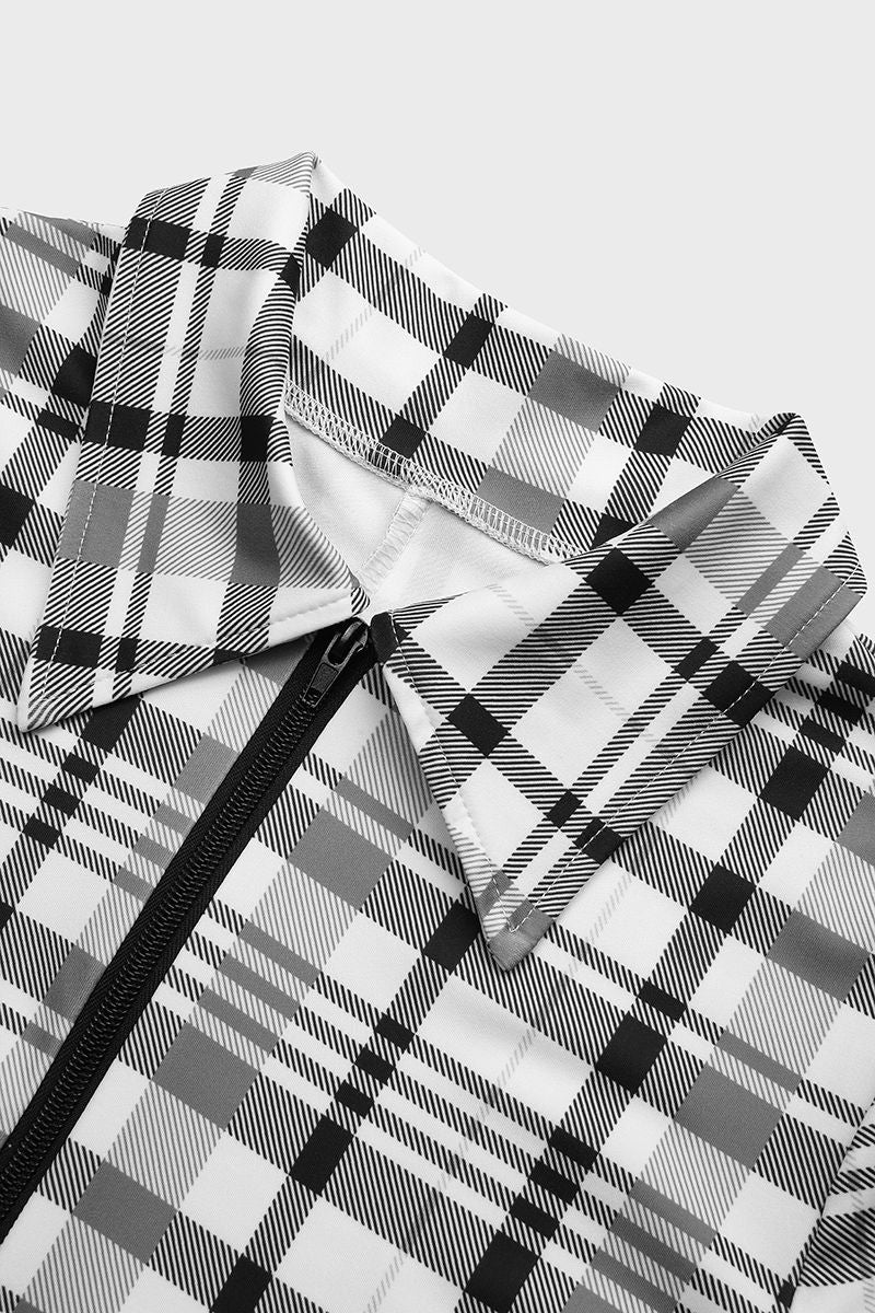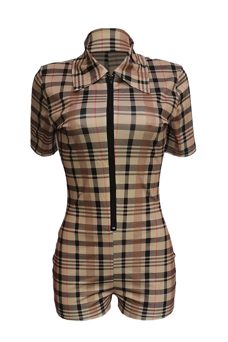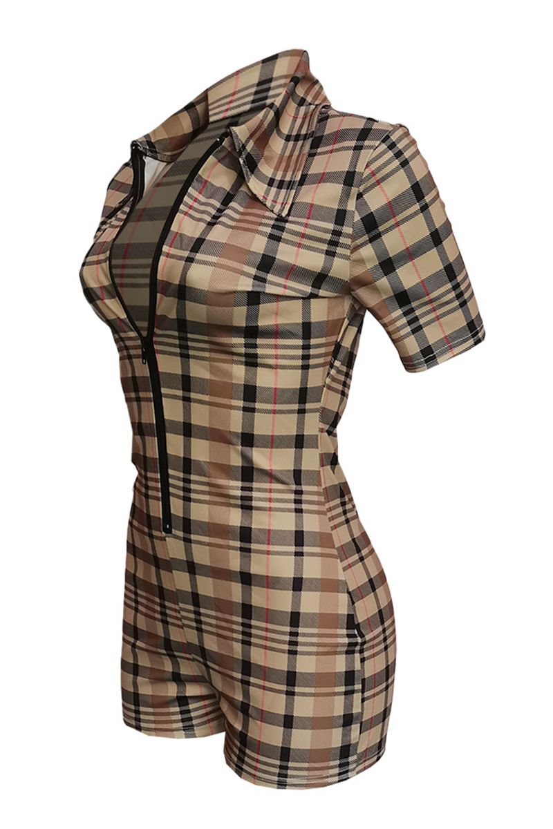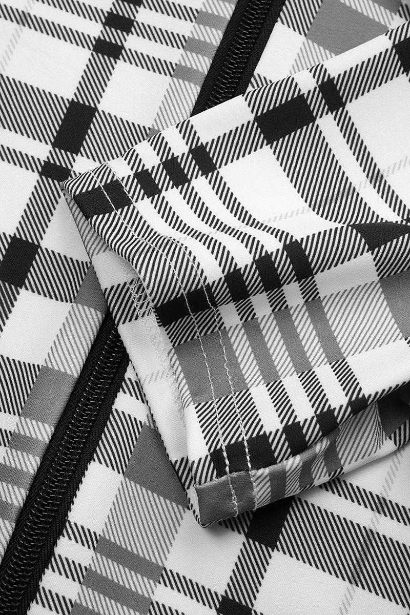 Plaid Zip Front Form Fitted Romper