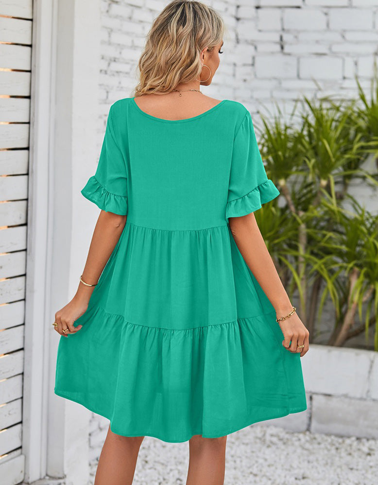 Treat yourself to a comfy new addition to your wardrobe with this midi dress. Crafted with breathable cotton and featuring loose-fitting waist, flounce sleeve, and pleated details, it's sure to please. With four stylish colors and cute, casual, and elegant styles to choose from, this dress is perfect for any occasion.