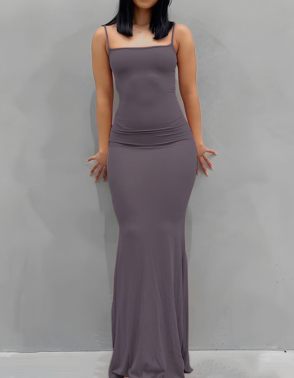 Plain Strap Ruched Slim Maxi Bodycon Dresses