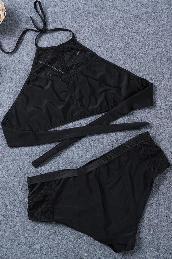 Plus Size High Neck Lace Panel Bikini Swimsuit - Two Piece Set