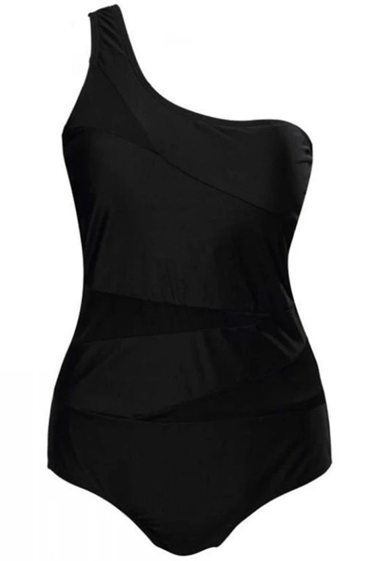Plus Size Mesh Insert One Shoulder One Piece Swimsuit