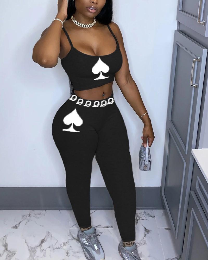 Poker & Letter Print Cami Top & Pants Set
