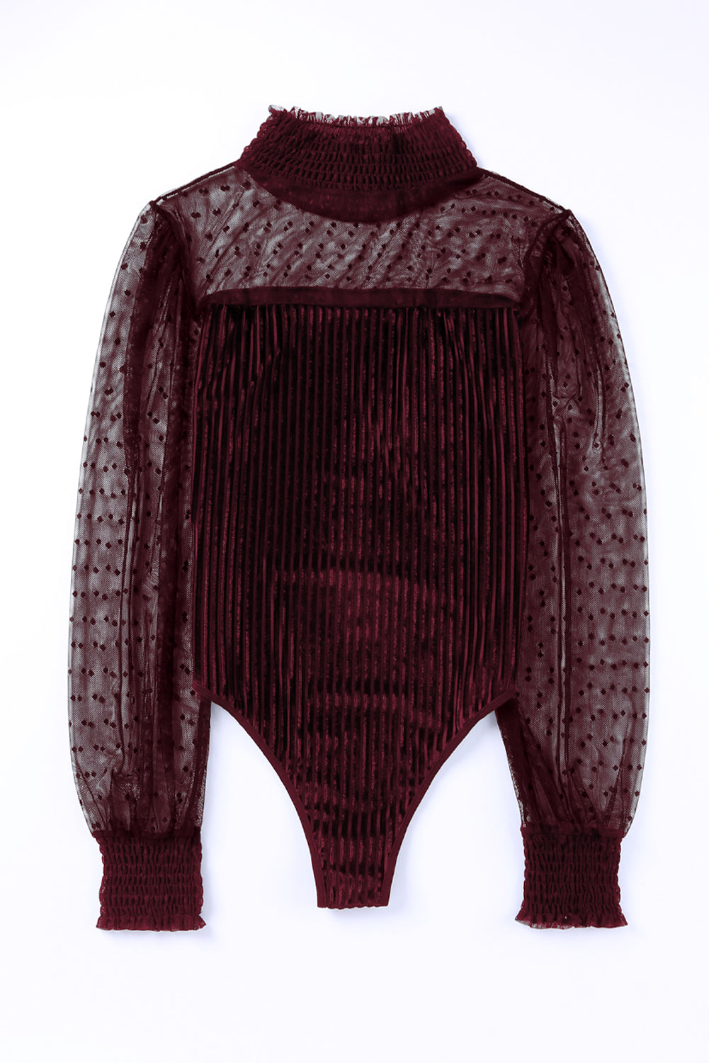 Red Sheer Dotty Long Sleeve Ribbed Velvet Bodysuit
