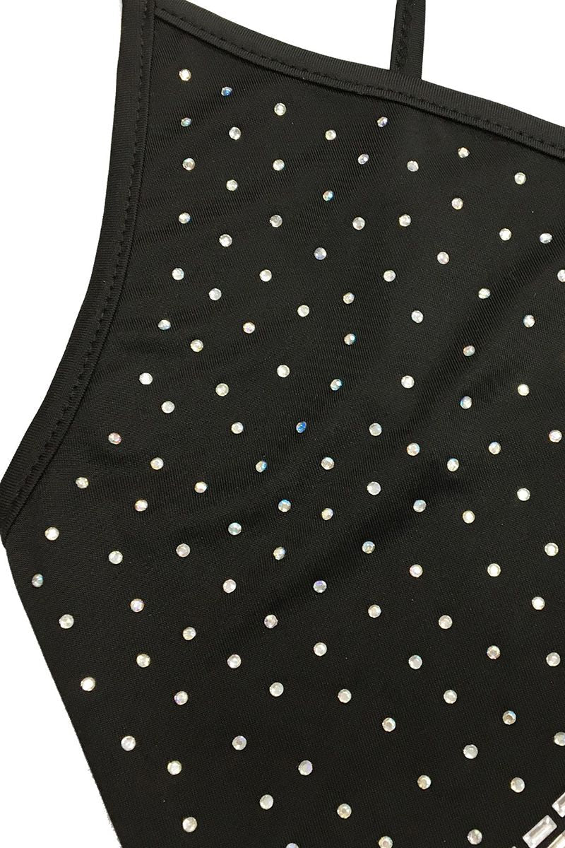 Rhinestone Decor Criss Cross Back Bodycon Dress