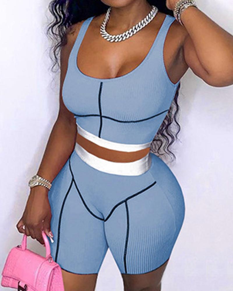 Ribbed Contrast Binding Taped Crop Top & Pants Set