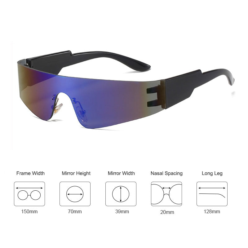 Rimless Mirror Punk Glasses Y2K Retro Sunglasses