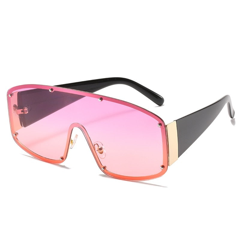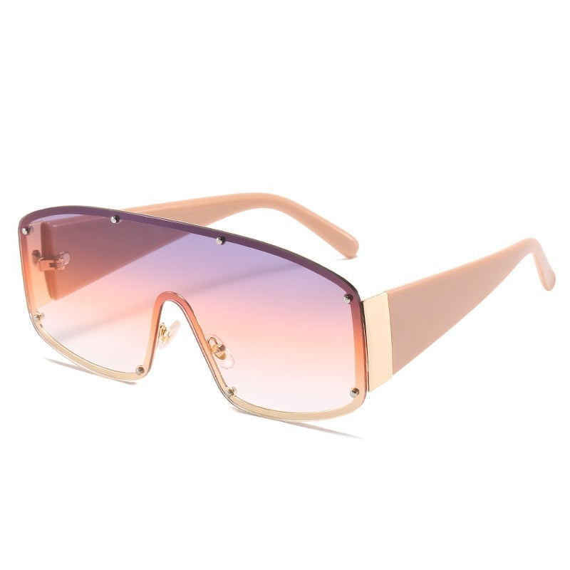 Rivet Rimless Oversized One-Piece Retro Sunglasses