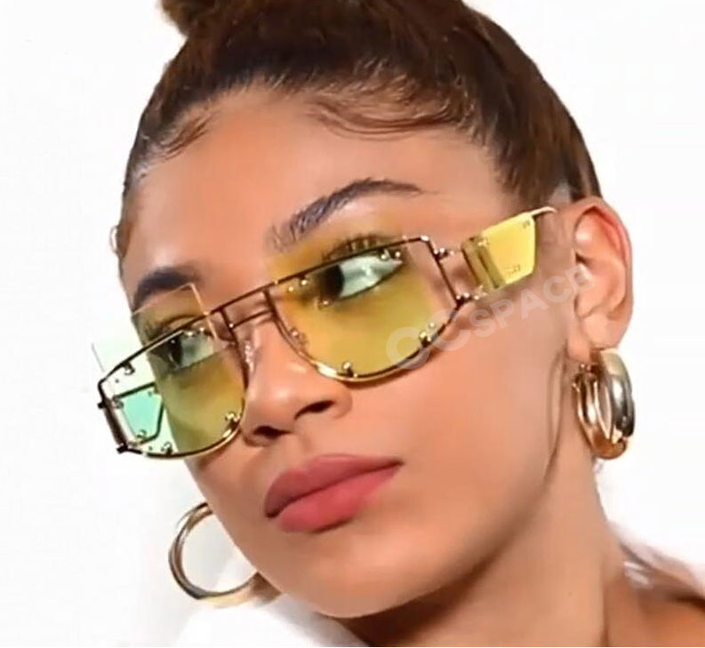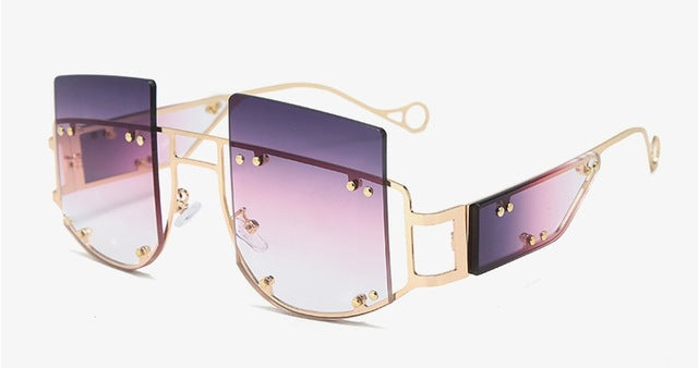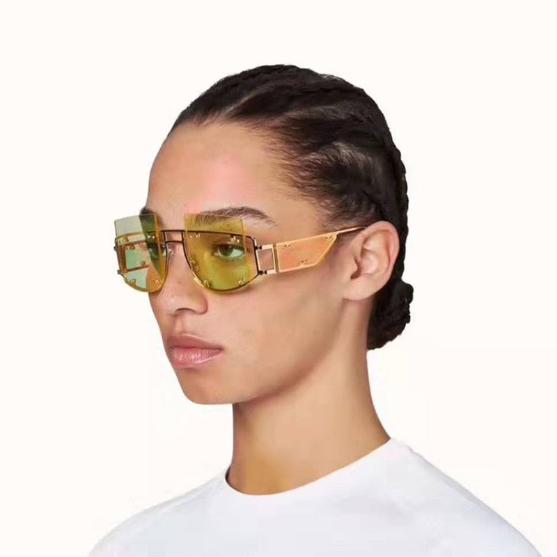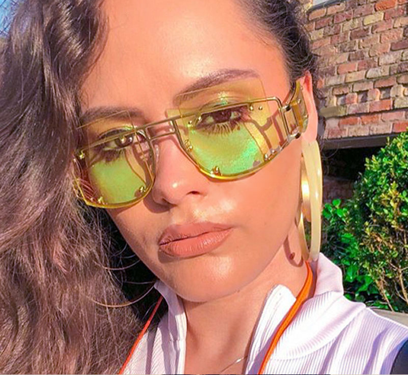 Rivets Personality on Lens Metal Frame Oversized Square Sunglasses
