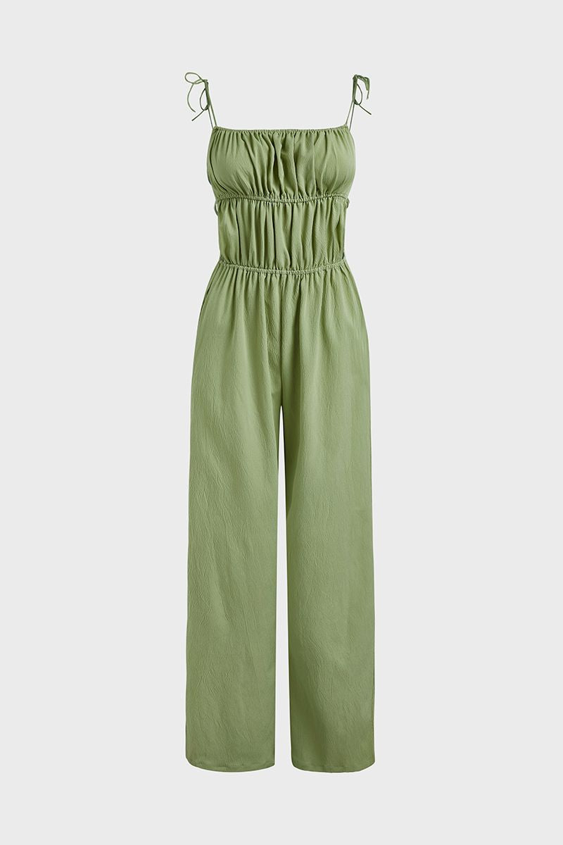 Ruched Knot Shoulder Backless Cami Jumpsuit
