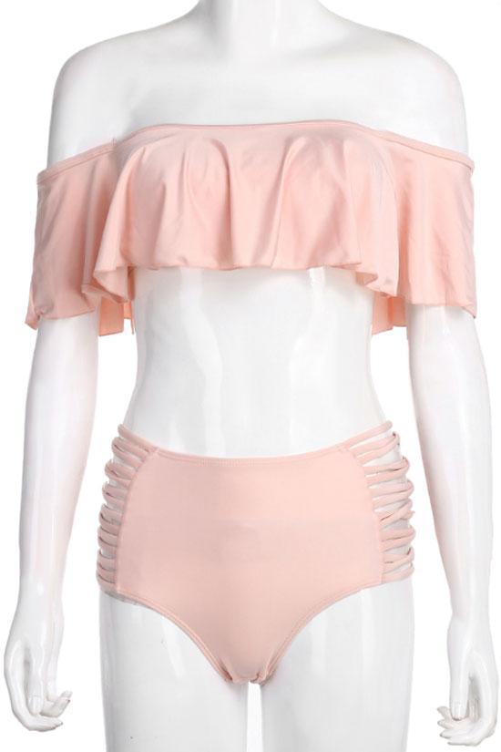 Ruffle High Waisted Off Shoulder Bandeau Bikini Swimsuit - Two Piece Set