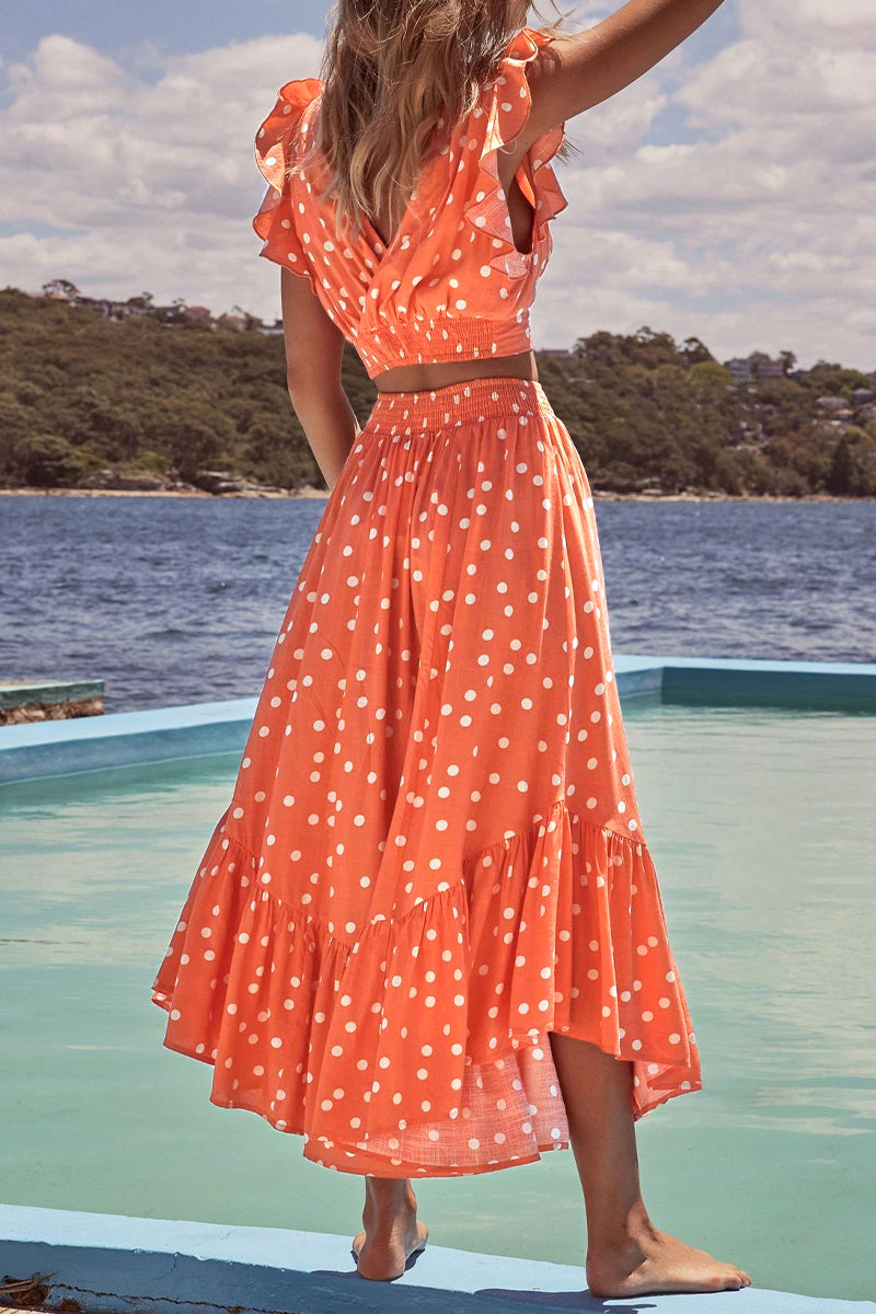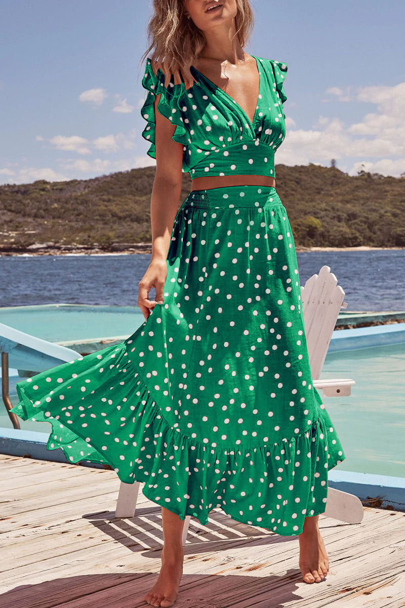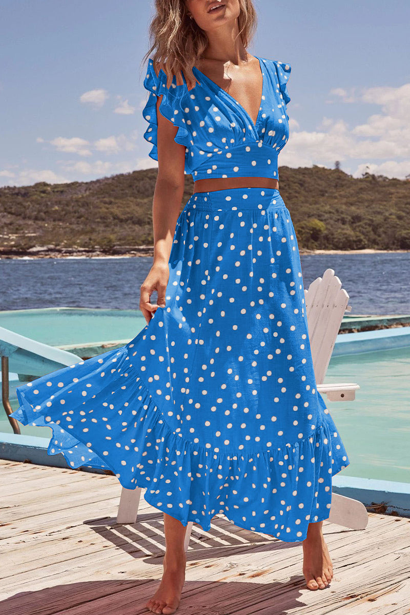 Sexy Bohemian Flounce V Neck Short Sleeve Two Pieces(5 Colors)