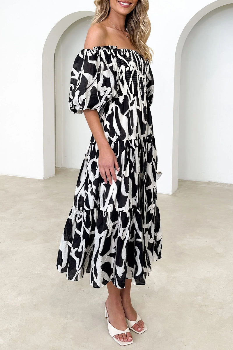 Sexy Floral Patchwork Off the Shoulder Cake Skirt Dresses
