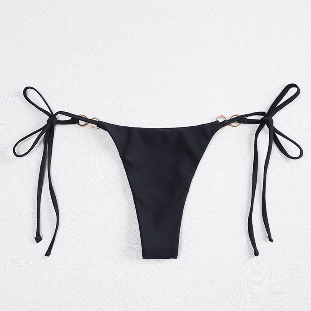 Sexy Metallic O Ring Tie Side String Cheeky Thong Brazilian Bikini Bottom