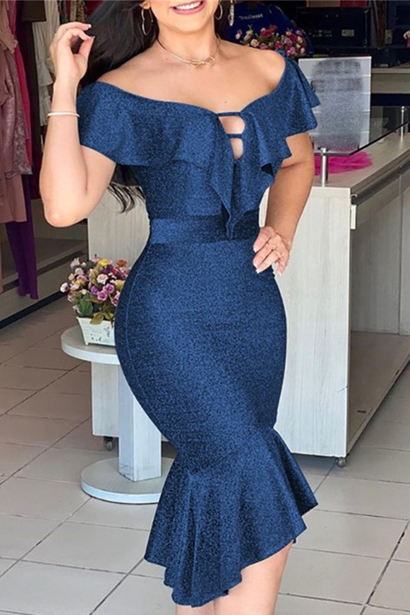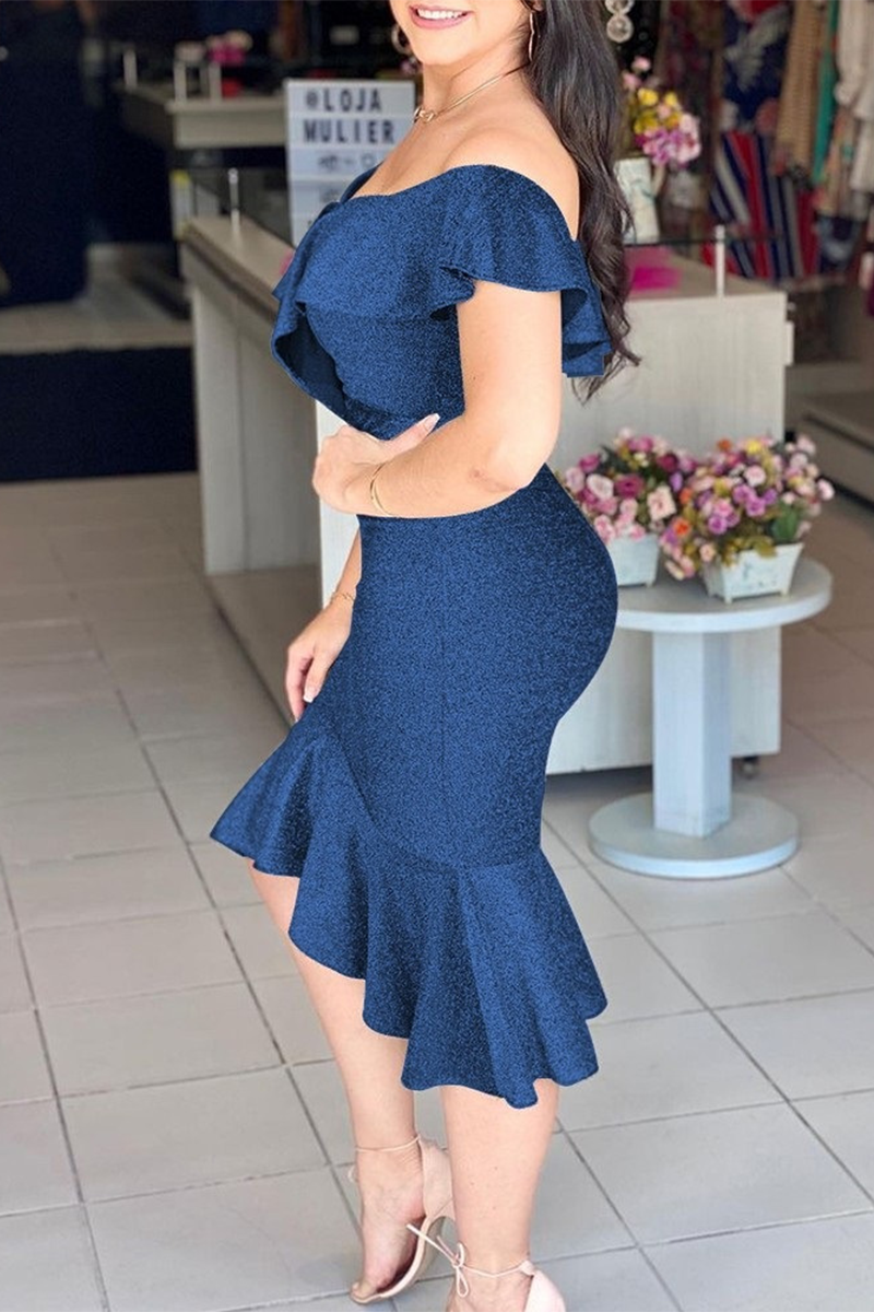 Sexy Print Patchwork Flounce Off the Shoulder Irregular Dress Dresses