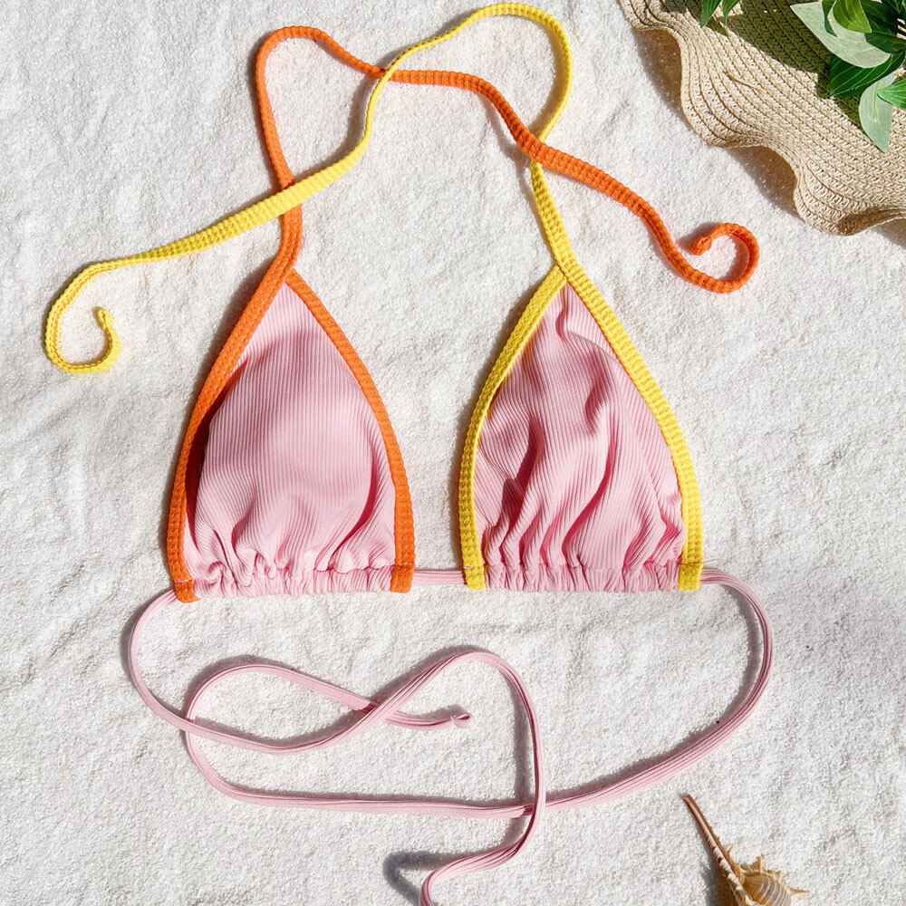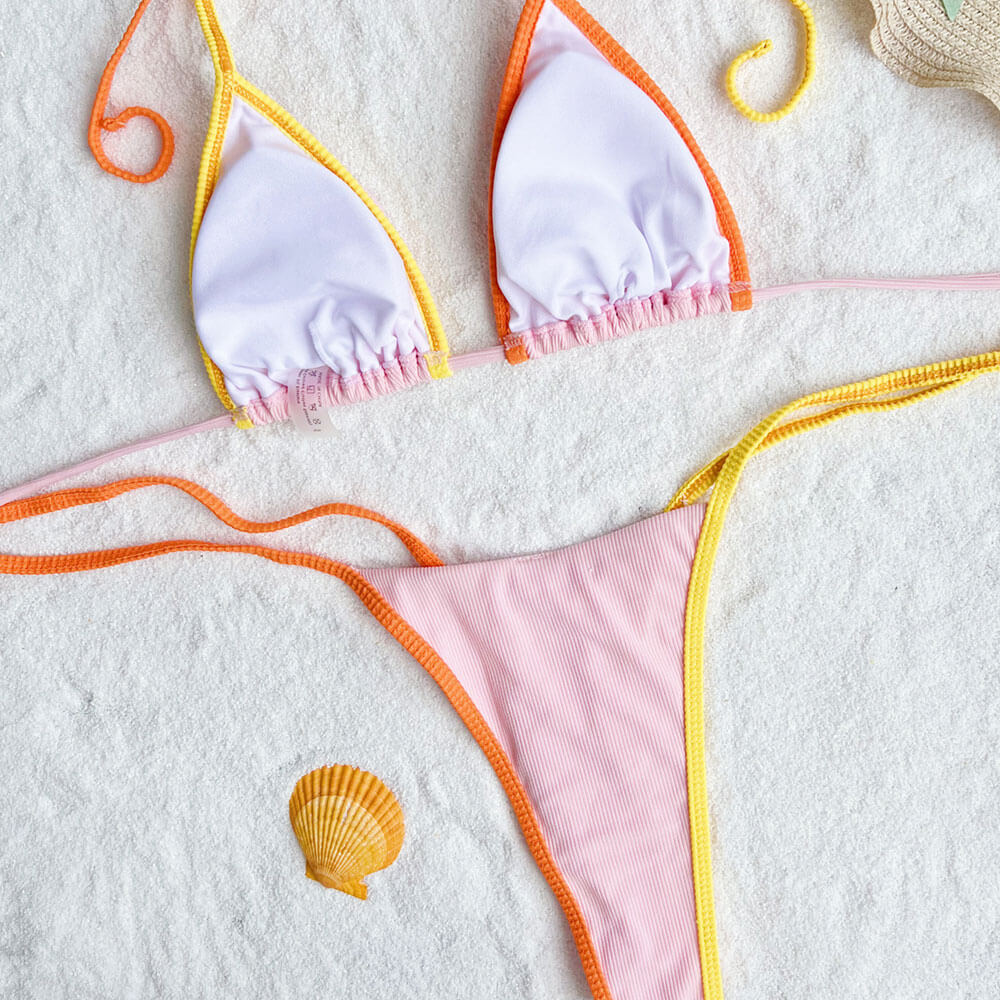 Sexy Ribbed Bicolor Tie String Cheeky Triangle Brazilian Two Piece Bikini Swimsuit