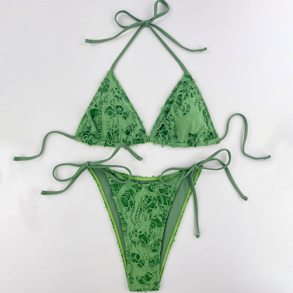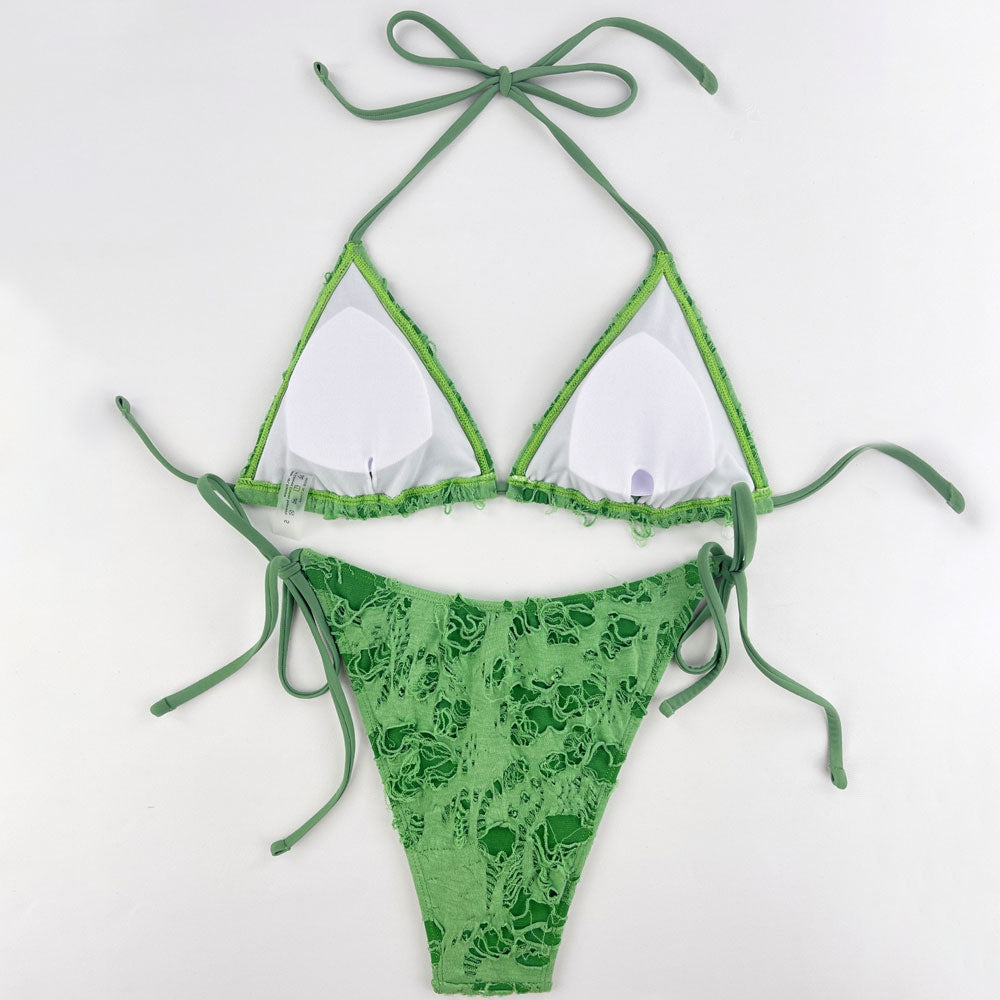 Sexy Ripped Tie String Cheeky Slide Triangle Brazilian Two Piece Bikini Swimsuit