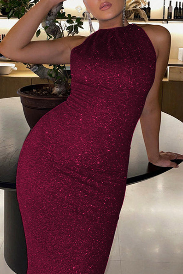 Sexy Slim Sleeveless Sleeveless Sparkling Maxi Dress