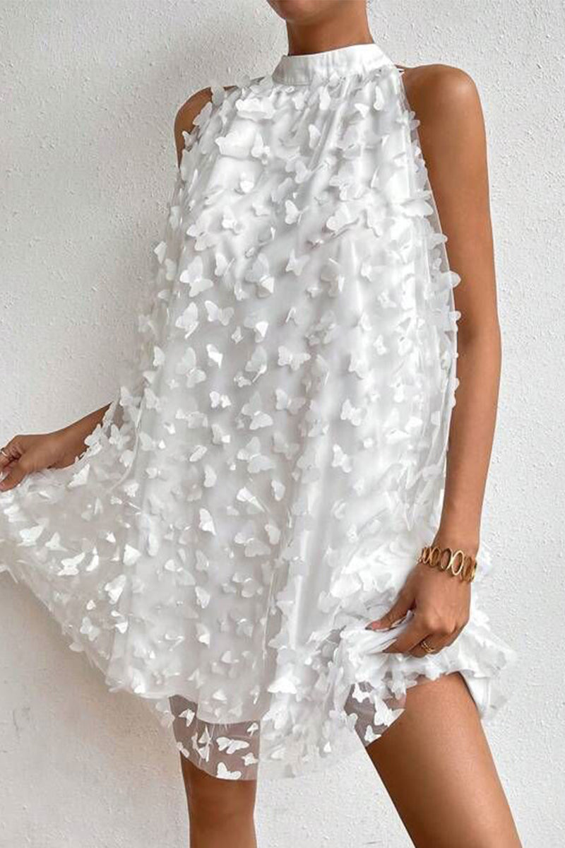 Sexy Solid Appliques Halter Sleeveless Dress Dresses(4 Colors)