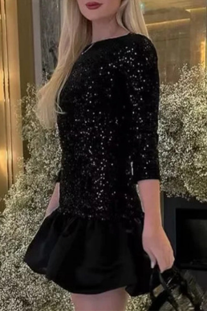 Sexy Solid Backless Sequined O Neck Trumpet Mermaid Dresses