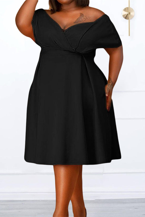 We're glad you've clicked on our new plus size dress as we're really into its feminine vibes! The off shoulder and short sleeve cut make this a great choice for any stylish girl.