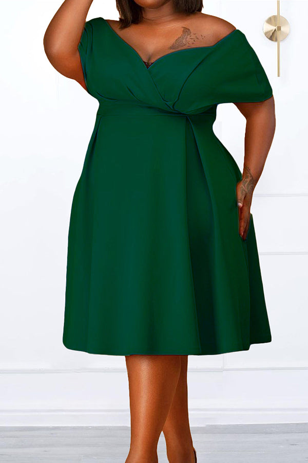 Sexy Solid Color Off Shoulder Pleated A-Line Midi Dress