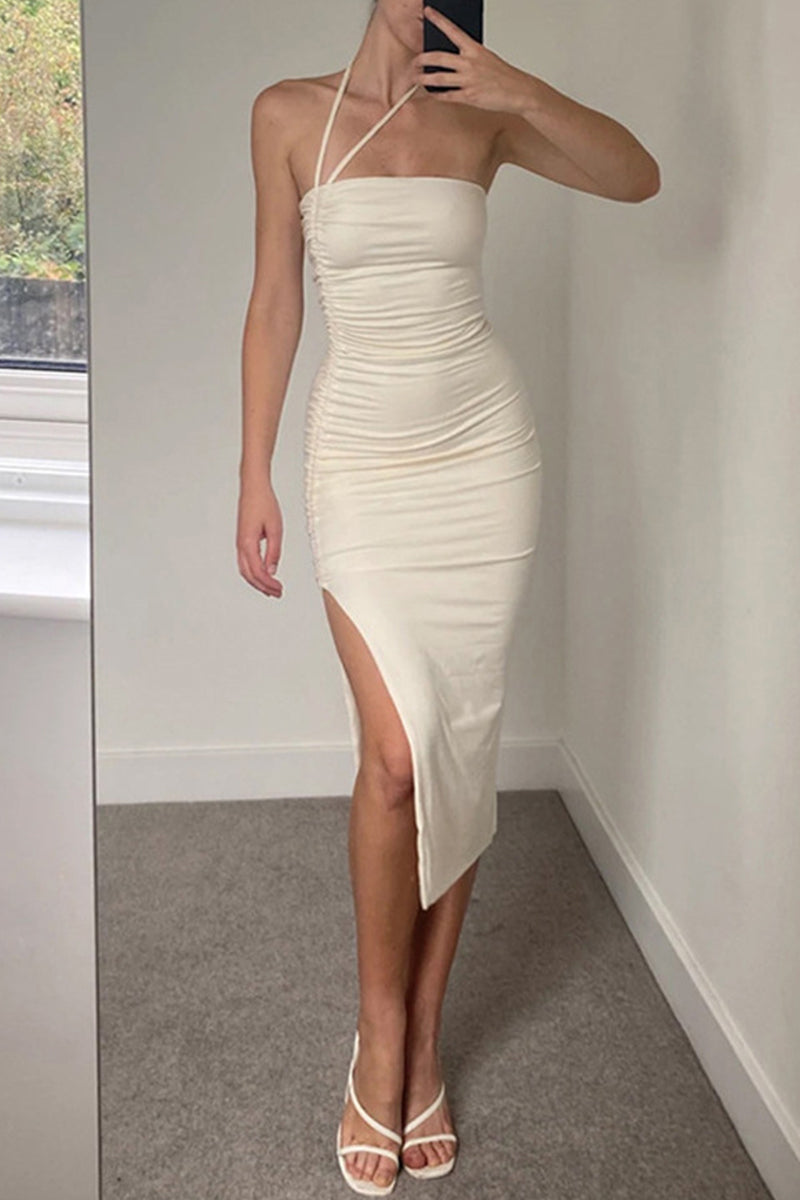 Sexy Solid Draw String Frenulum Slit Strapless Wrapped Skirt Dresses(Wear in a variety of ways)