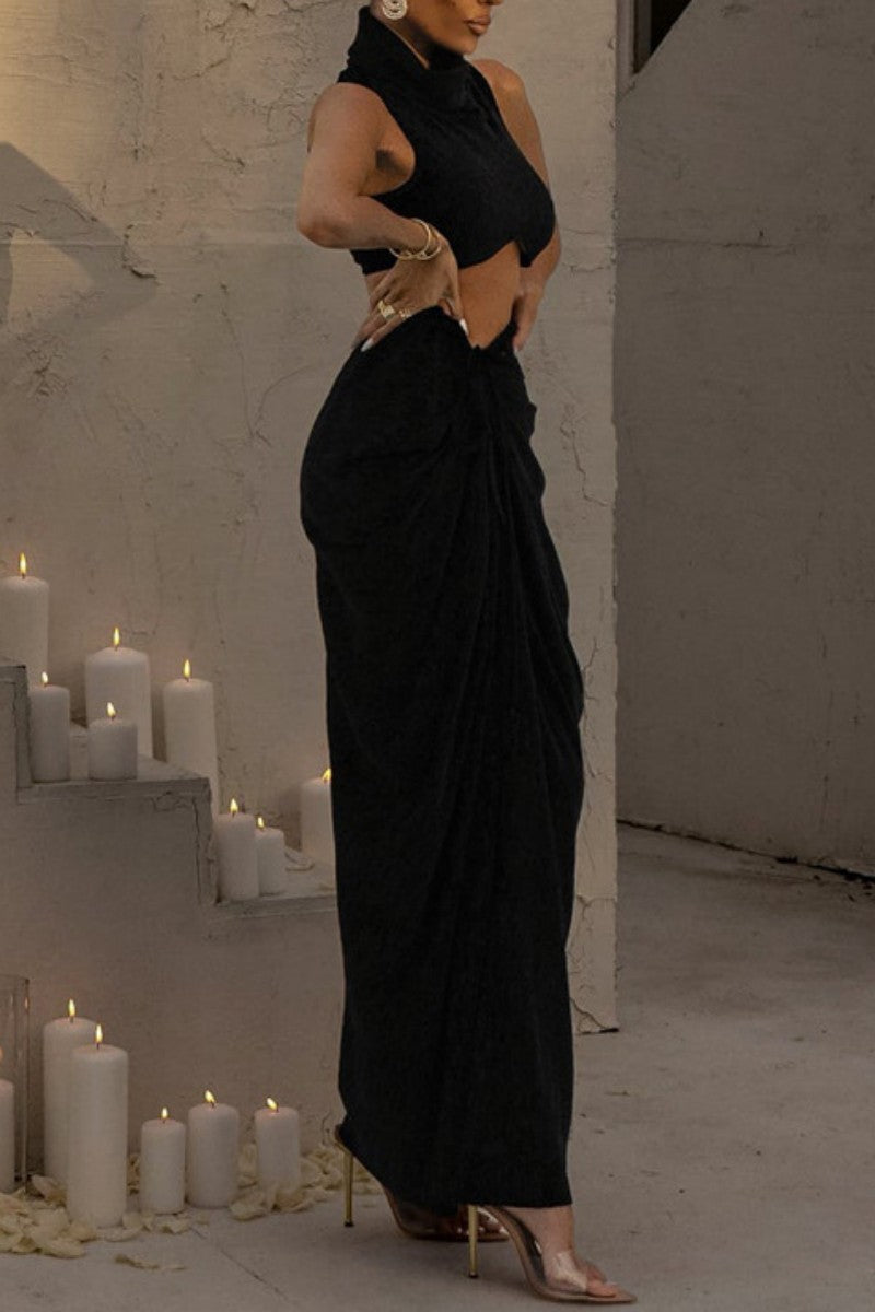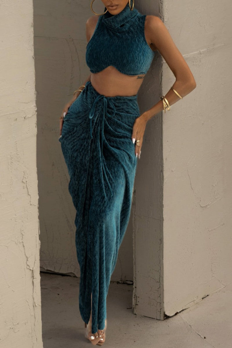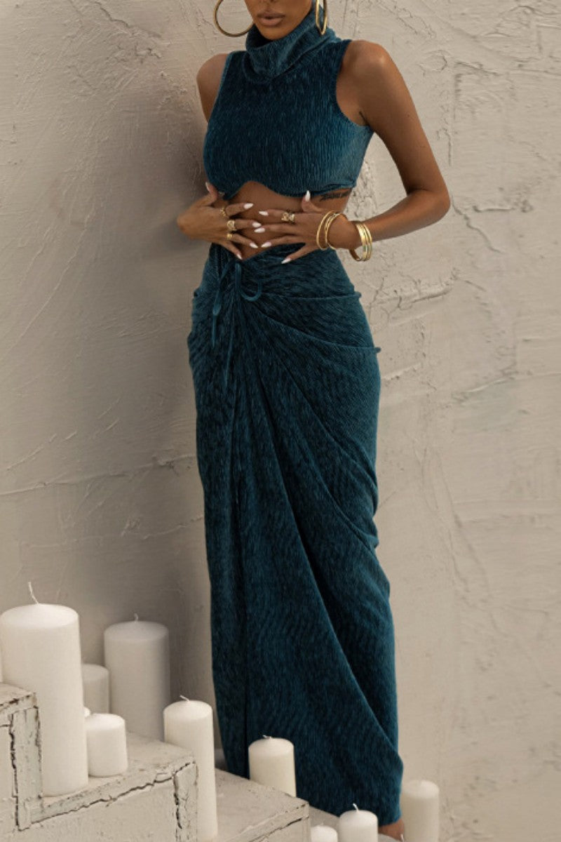 Sexy Solid Frenulum Turtleneck Two Pieces