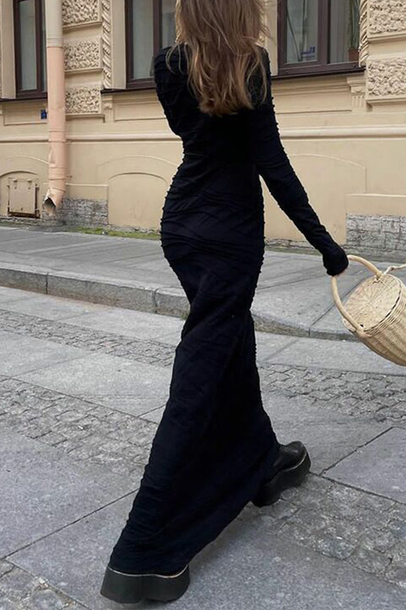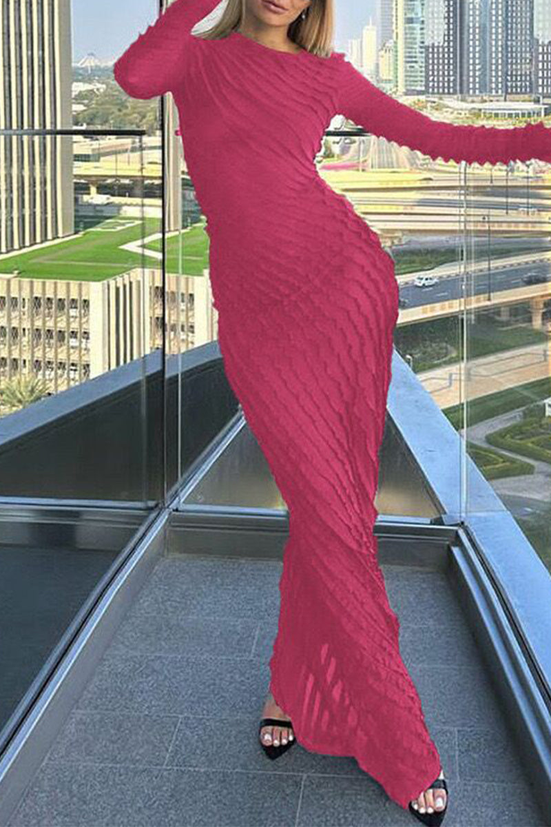 Sexy Solid Patchwork Fold O Neck One Step Skirt Dresses