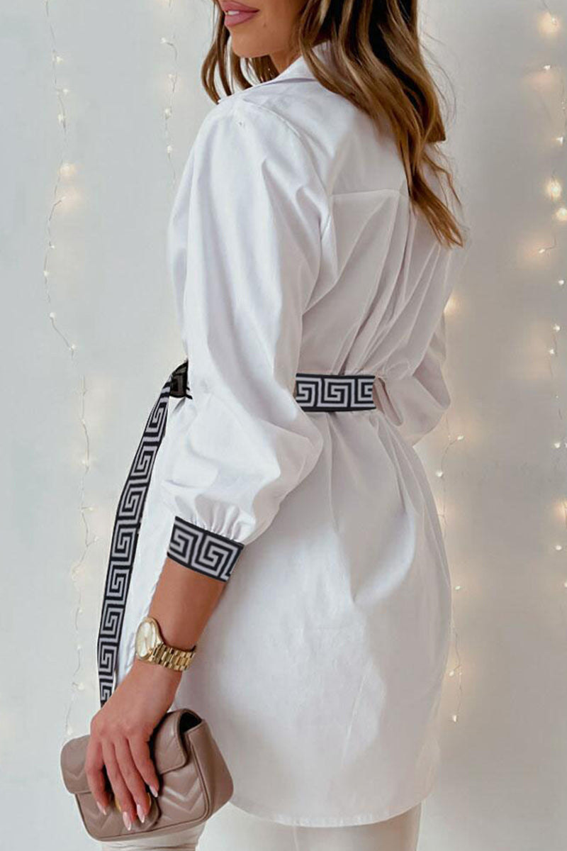 Sexy Solid Patchwork Frenulum With Belt Asymmetrical Turndown Collar Irregular Dress Dresses