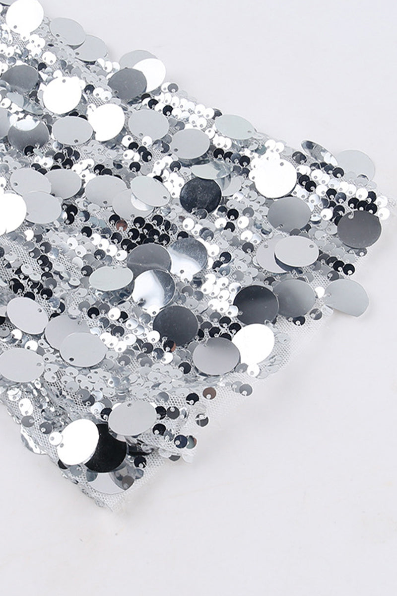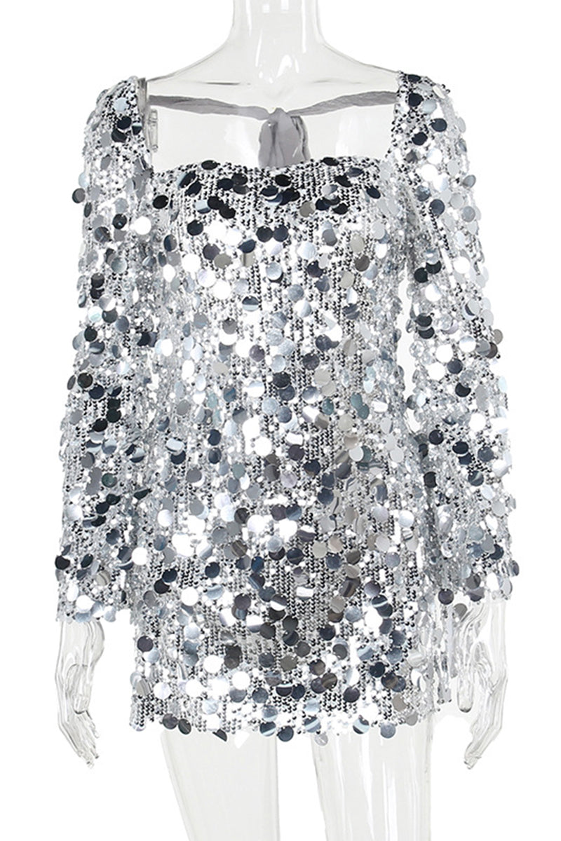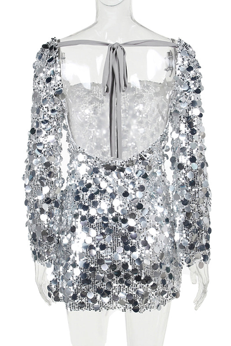 Sexy Solid Sequins Backless Square Collar Waist Skirt Dresses