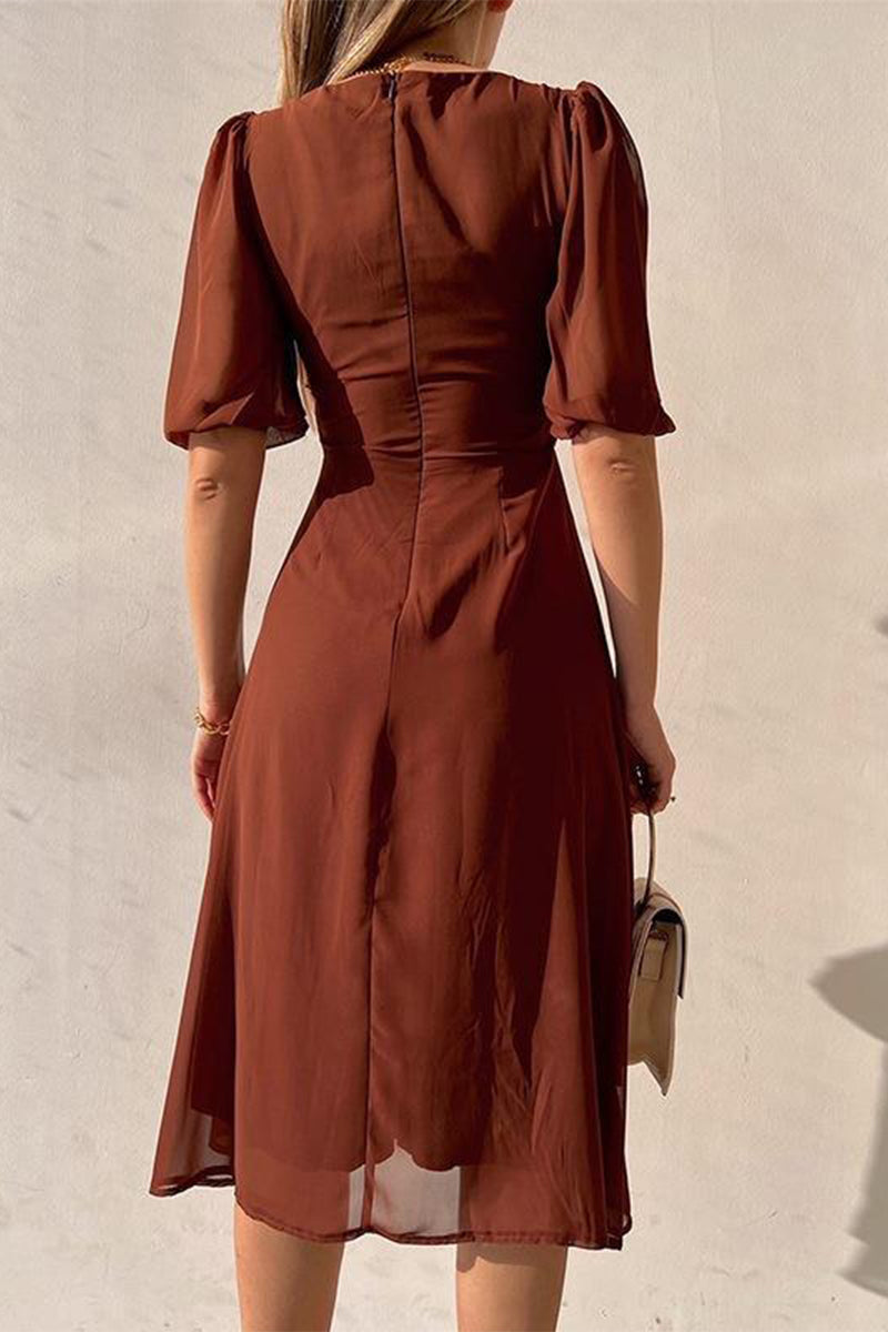 Sexy Solid Slit V Neck A Line Short Sleeve Dress