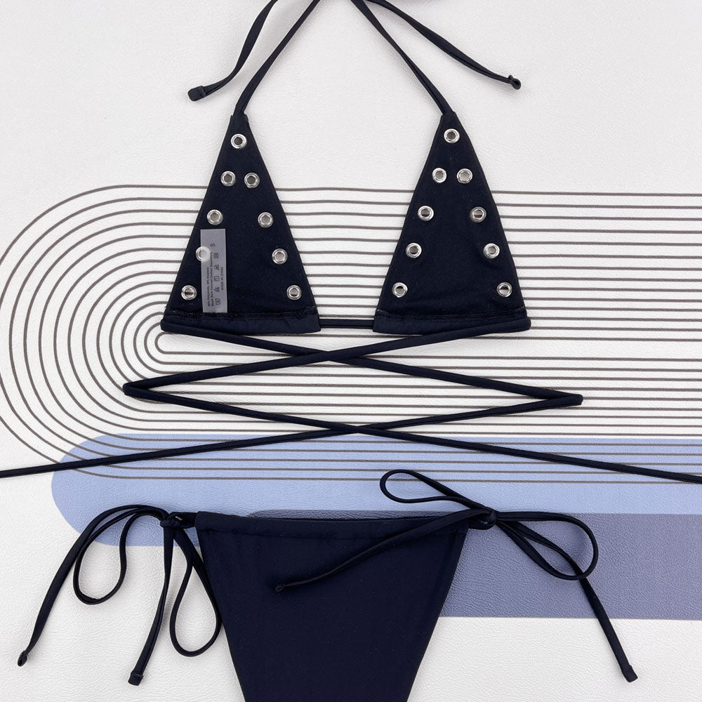 Sexy Studded Tie String Cheeky Thong Micro Triangle Brazilian Two Piece Bikini Swimsuit