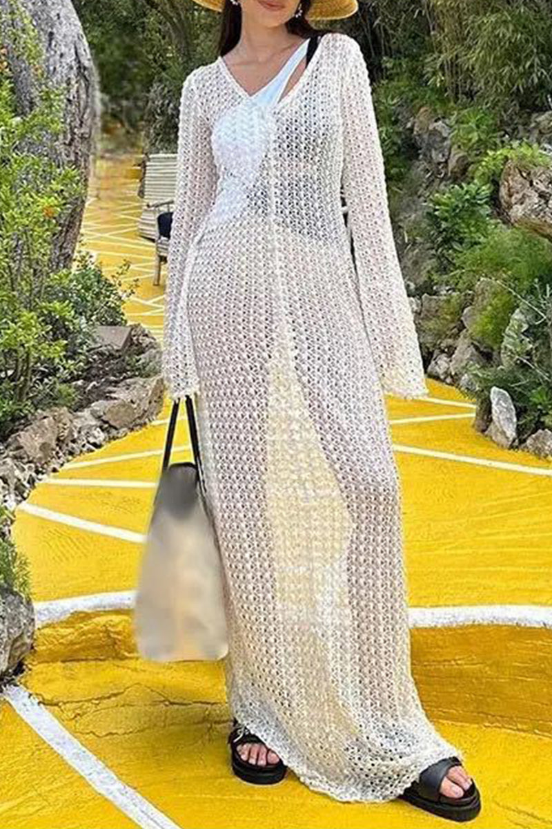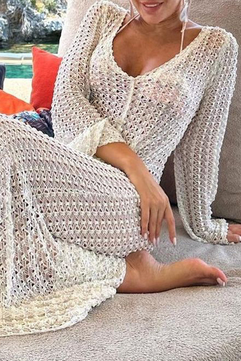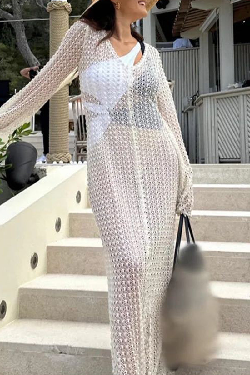 Sexy Vacation Solid Hollowed Out See-through Swimwears Cover Up