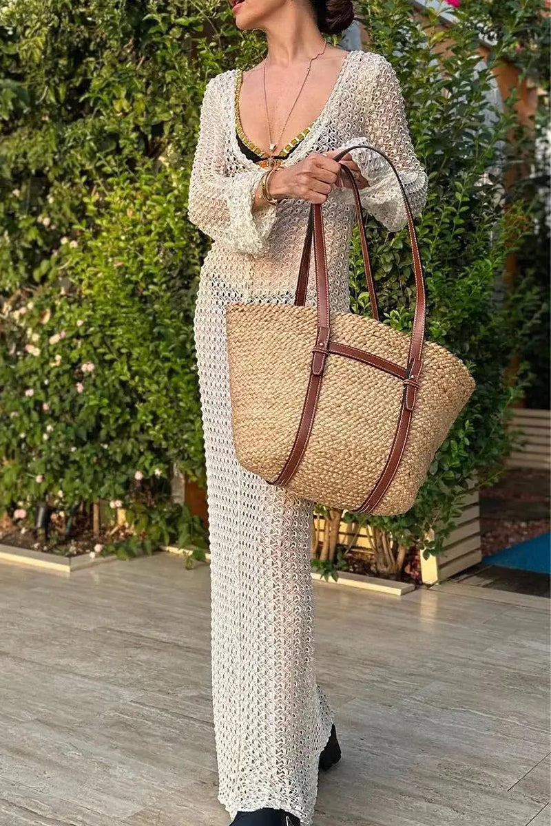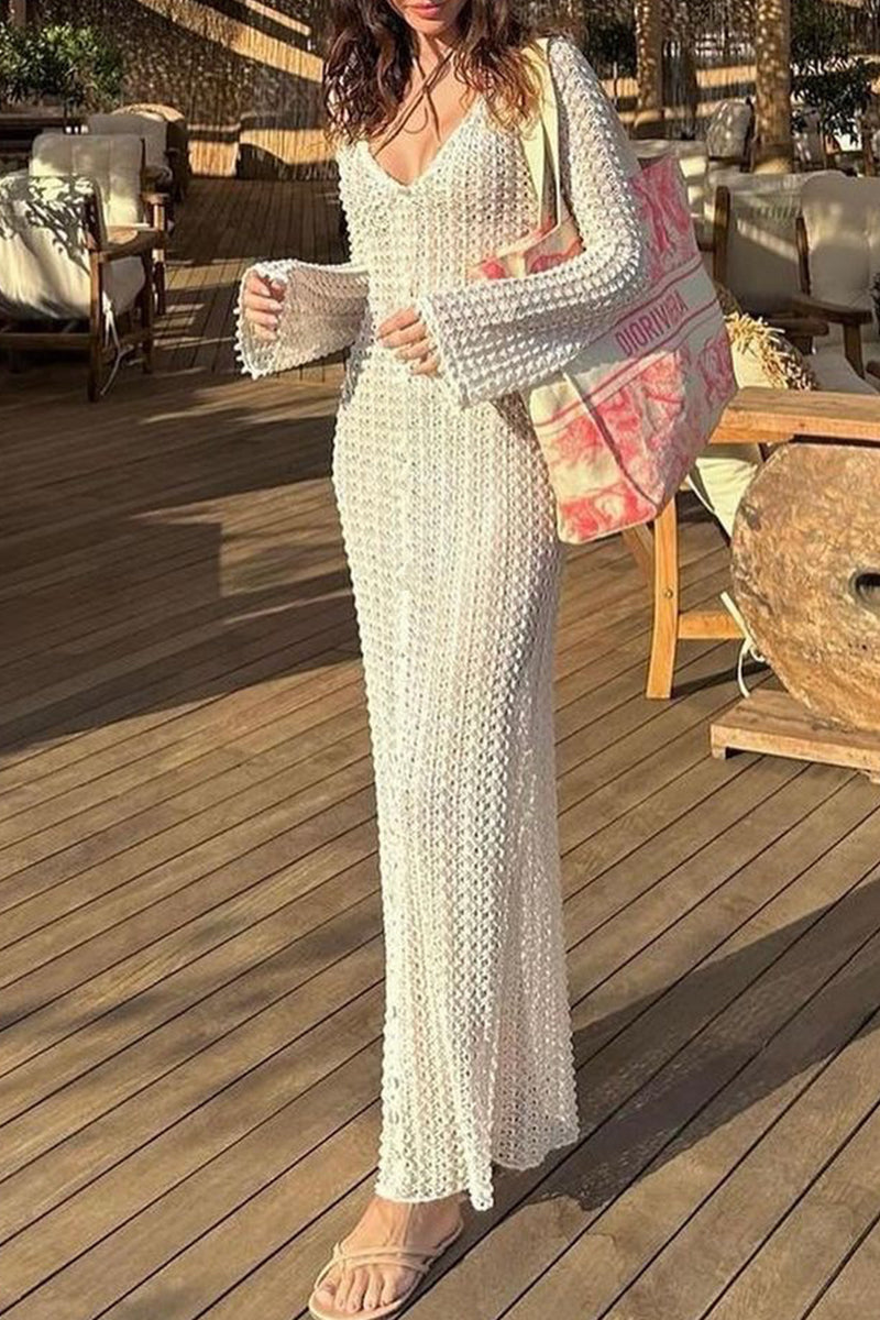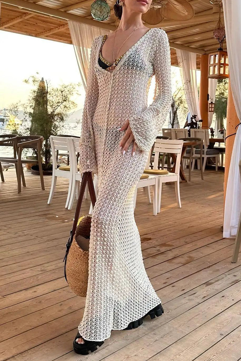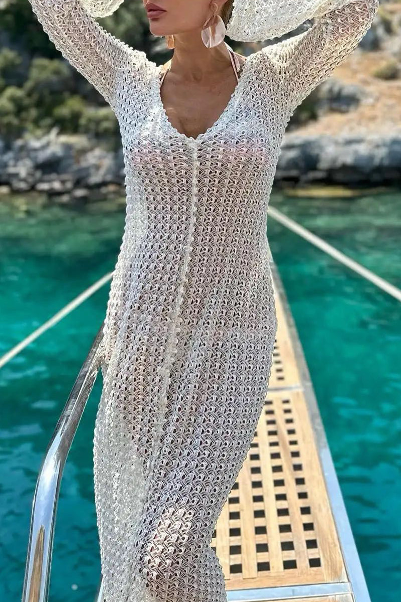 Sexy Vacation Solid Hollowed Out See-through Swimwears Cover Up