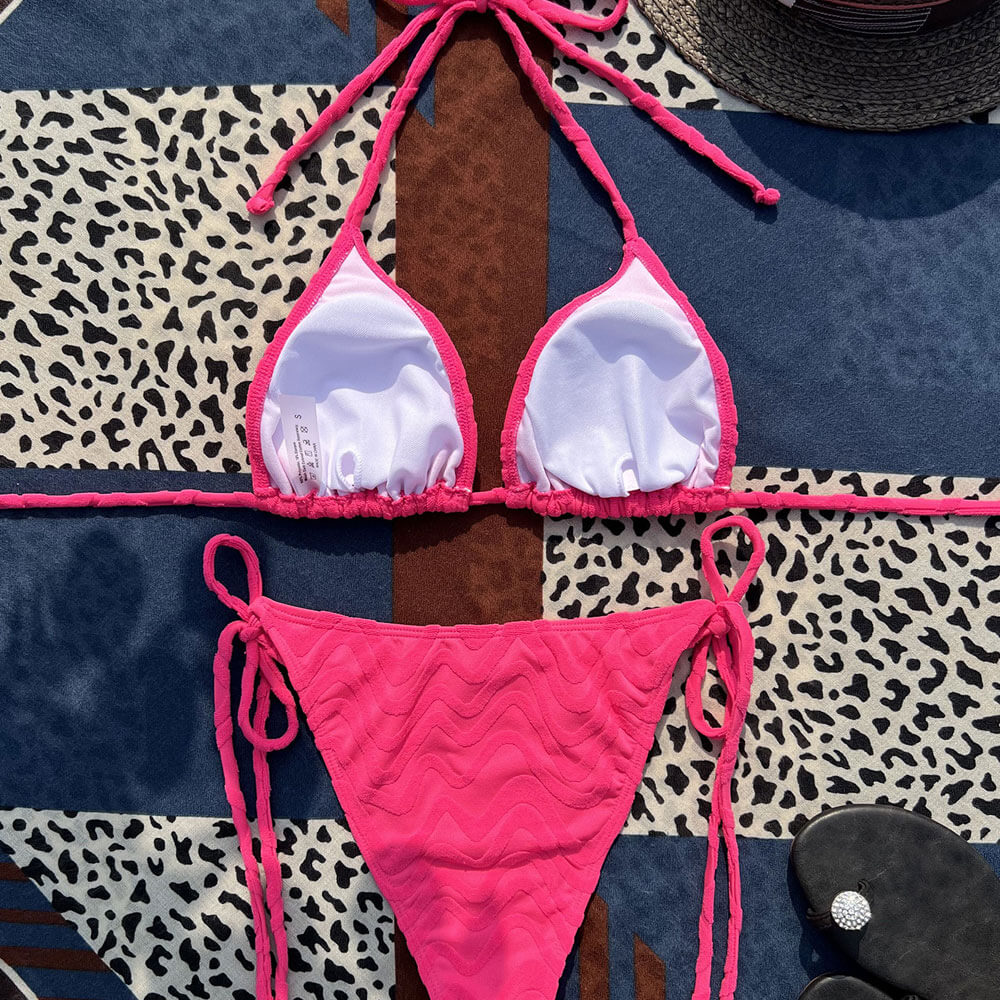 Sexy Wavy Terry Cloth Tie String Sliding Triangle Brazilian Two Piece Bikini Swimsuit