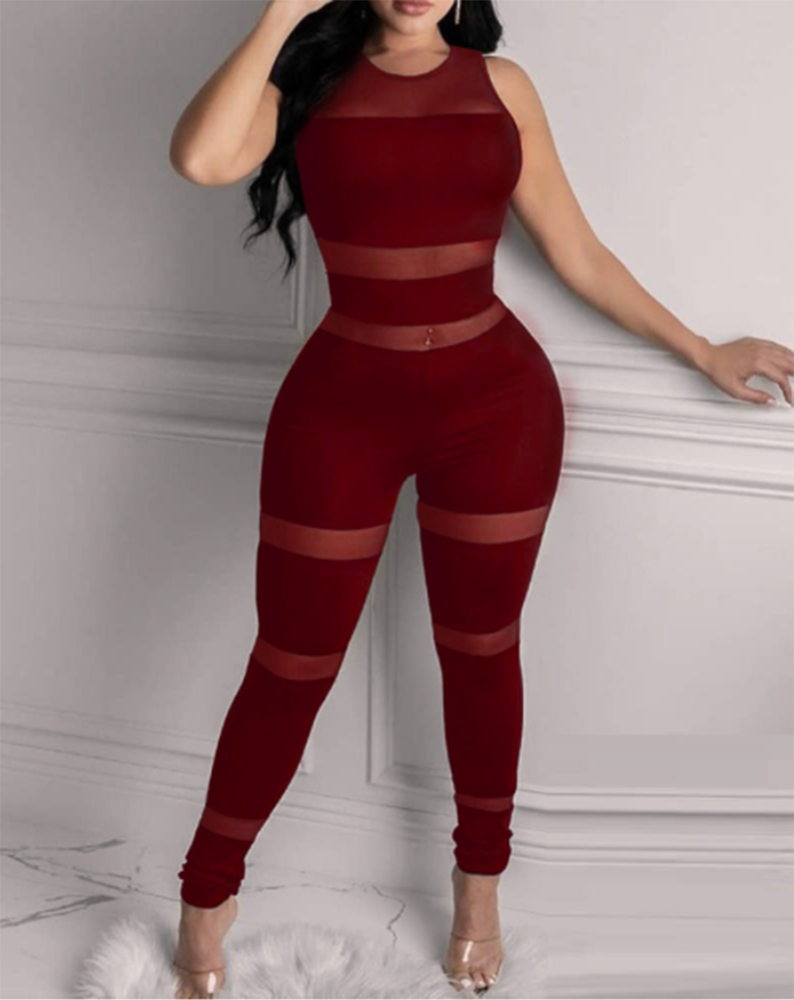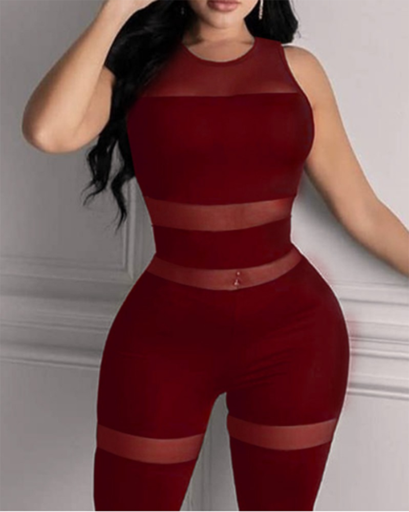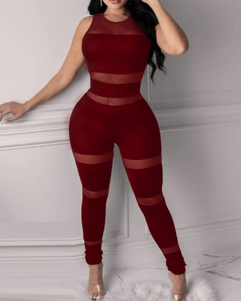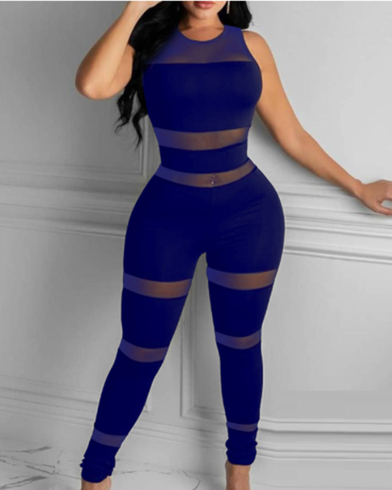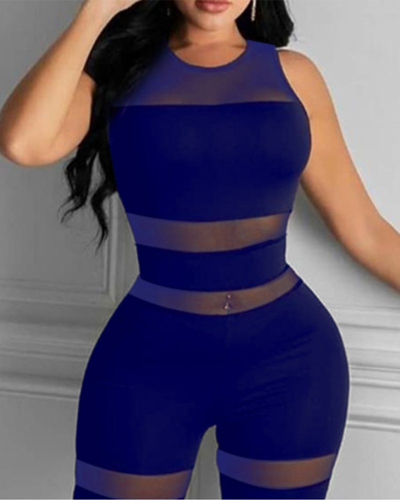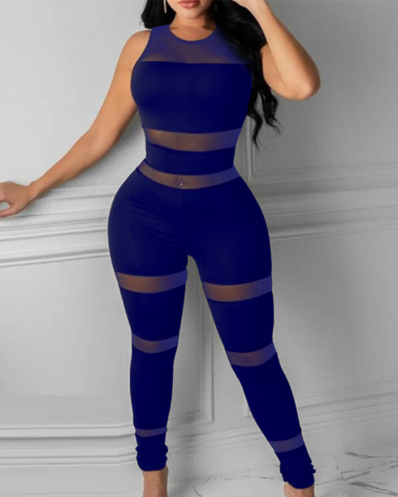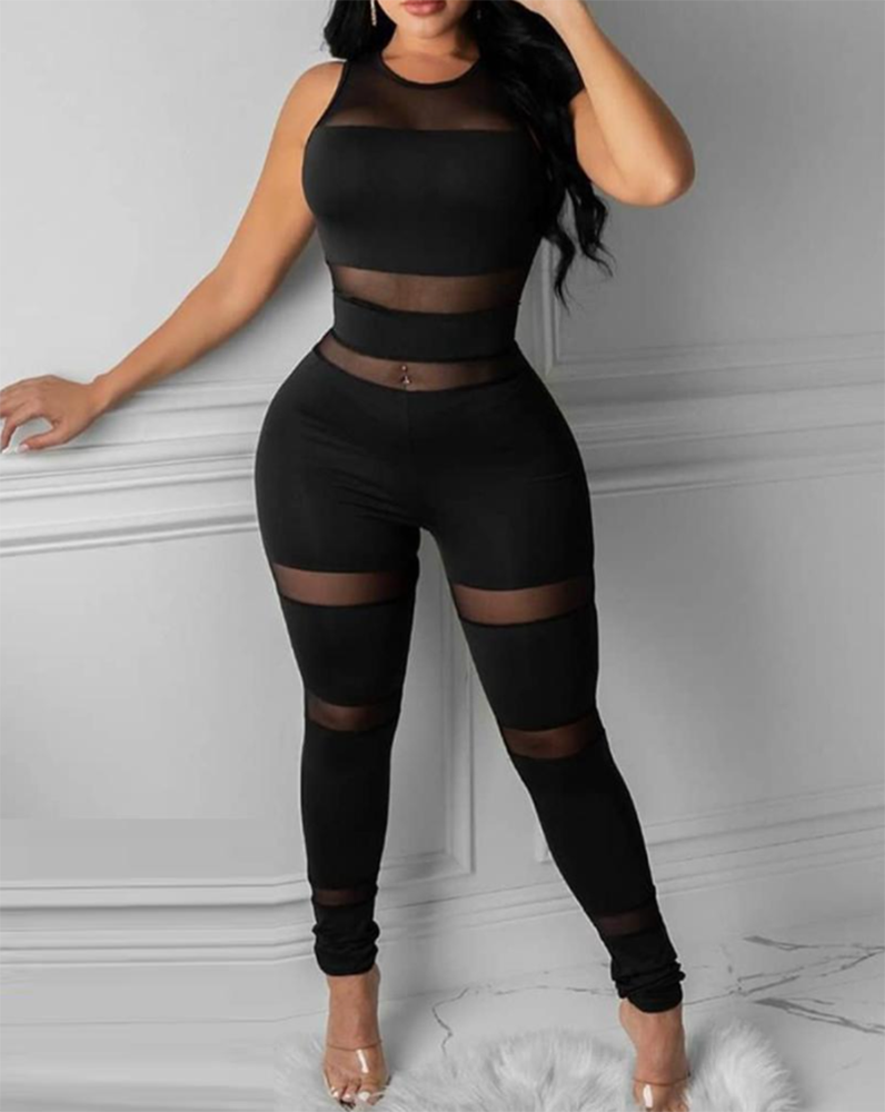 Sheer Mesh Spliced Sleeveless Casual Jumpsuit