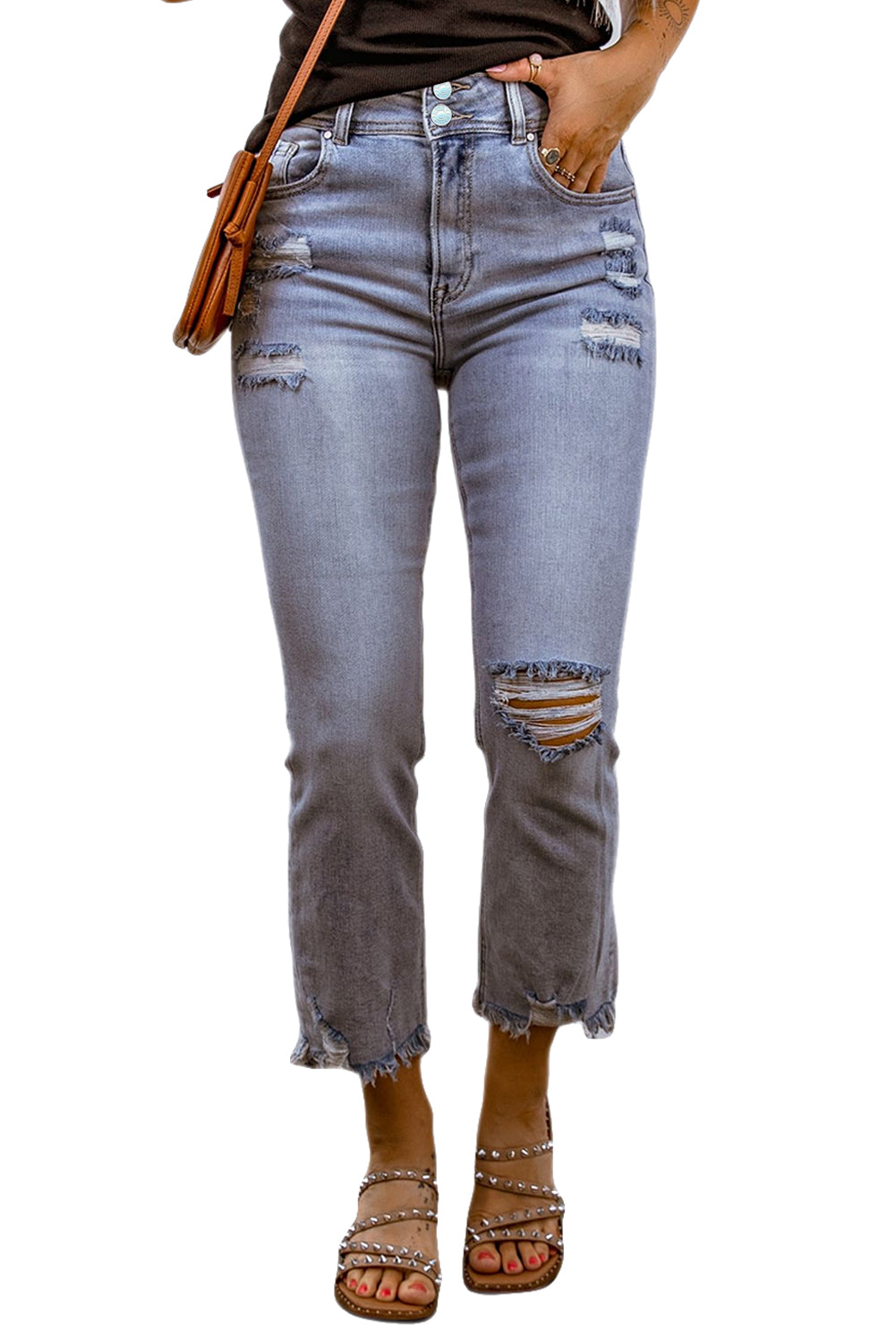 • The ripped jeans with straight legs design can show off your slender legs