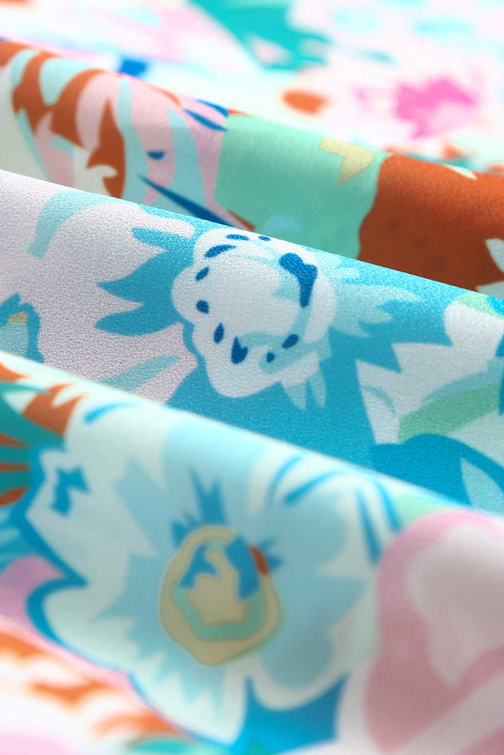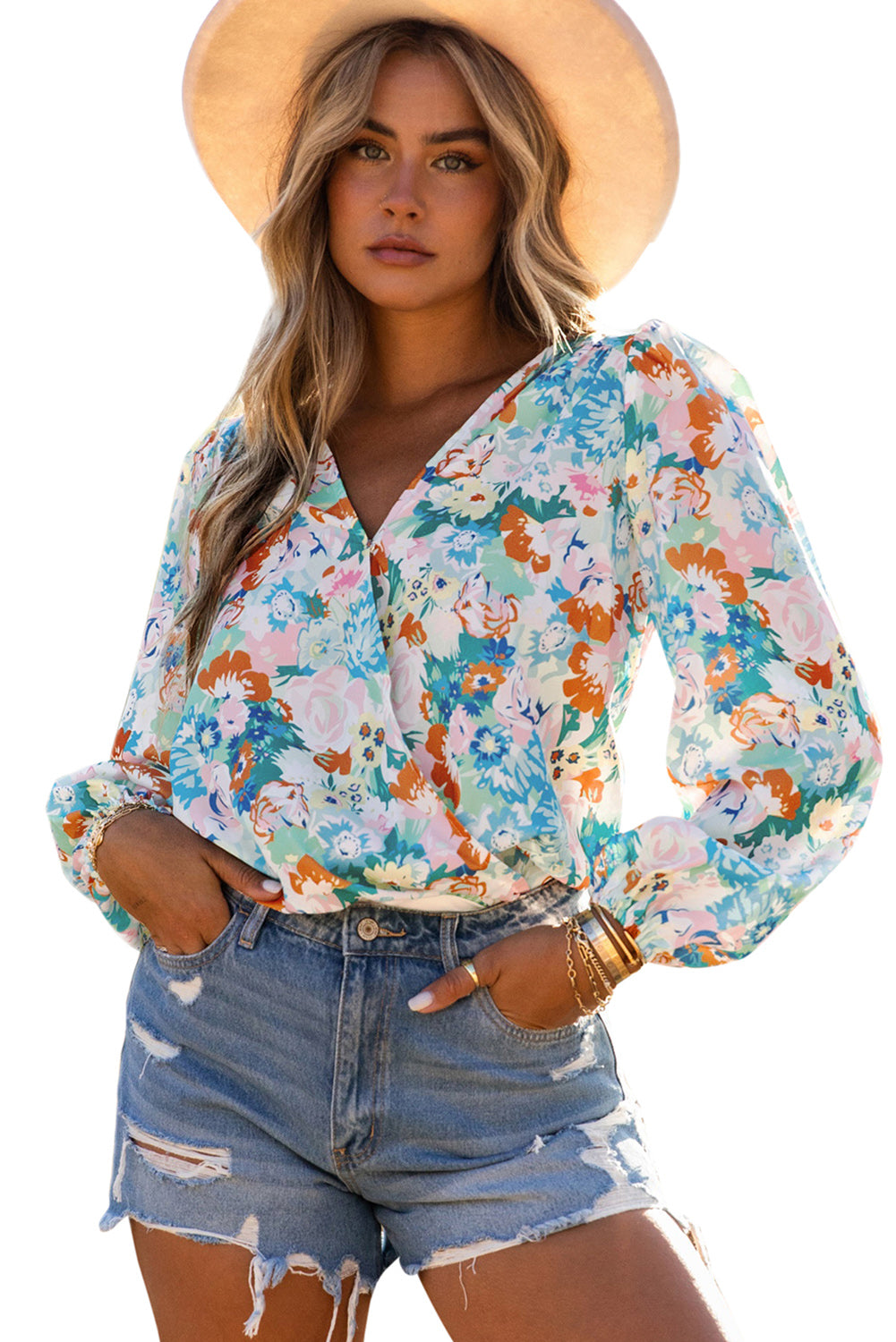 Sky Blue Floral Print Wrap Long Sleeve Bodysuit