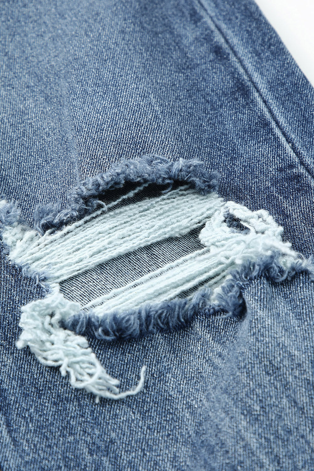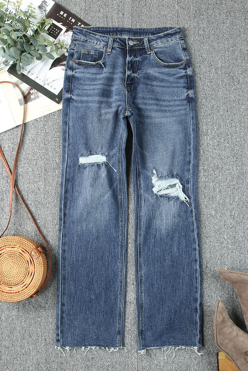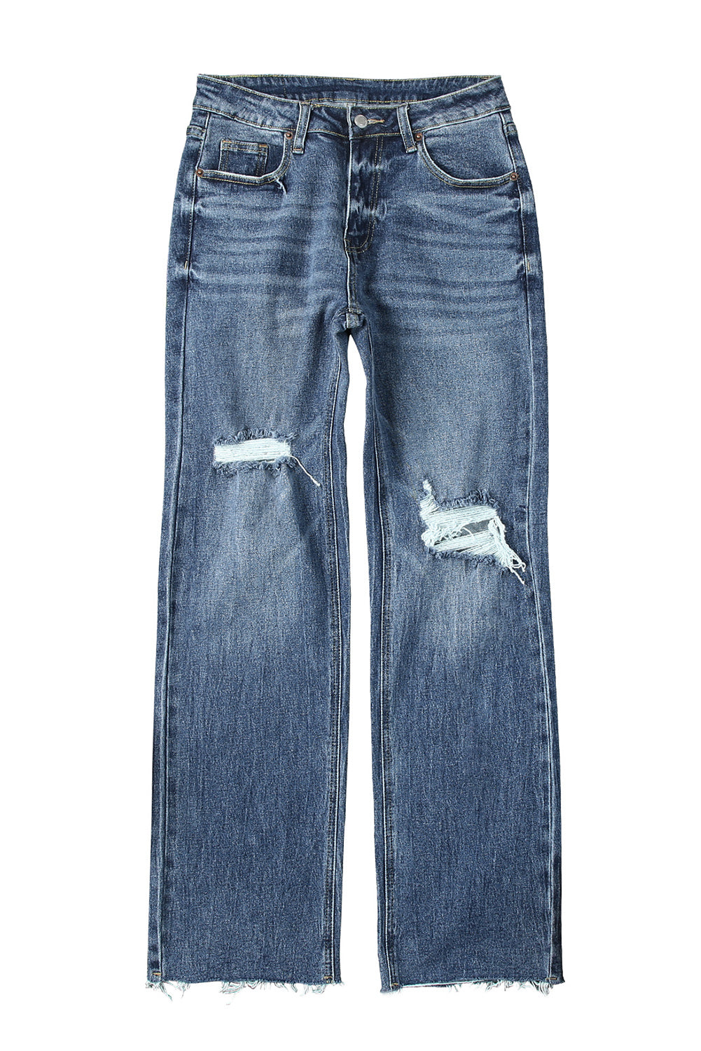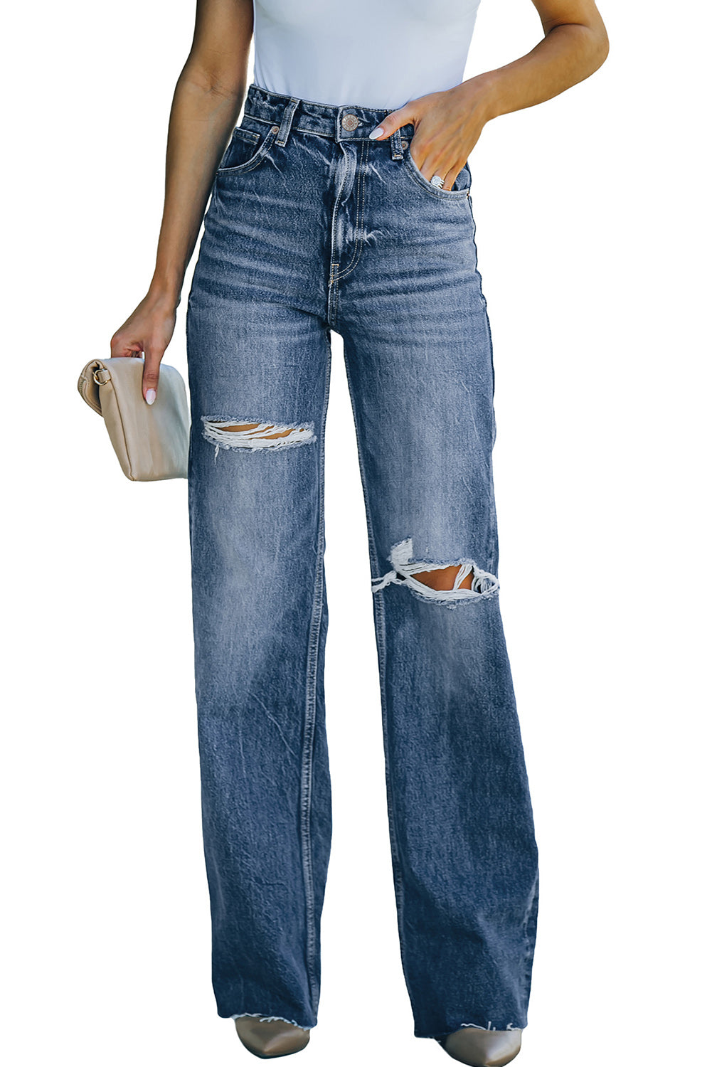 Sky Blue High Rise Ripped Straight Legs Loose Jeans