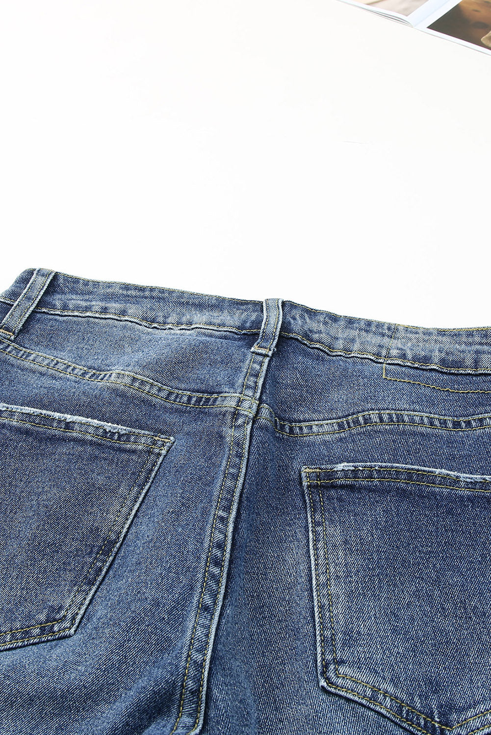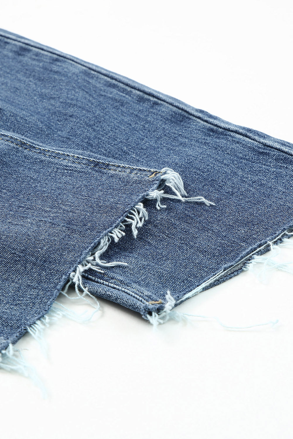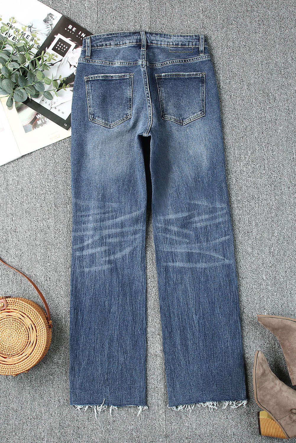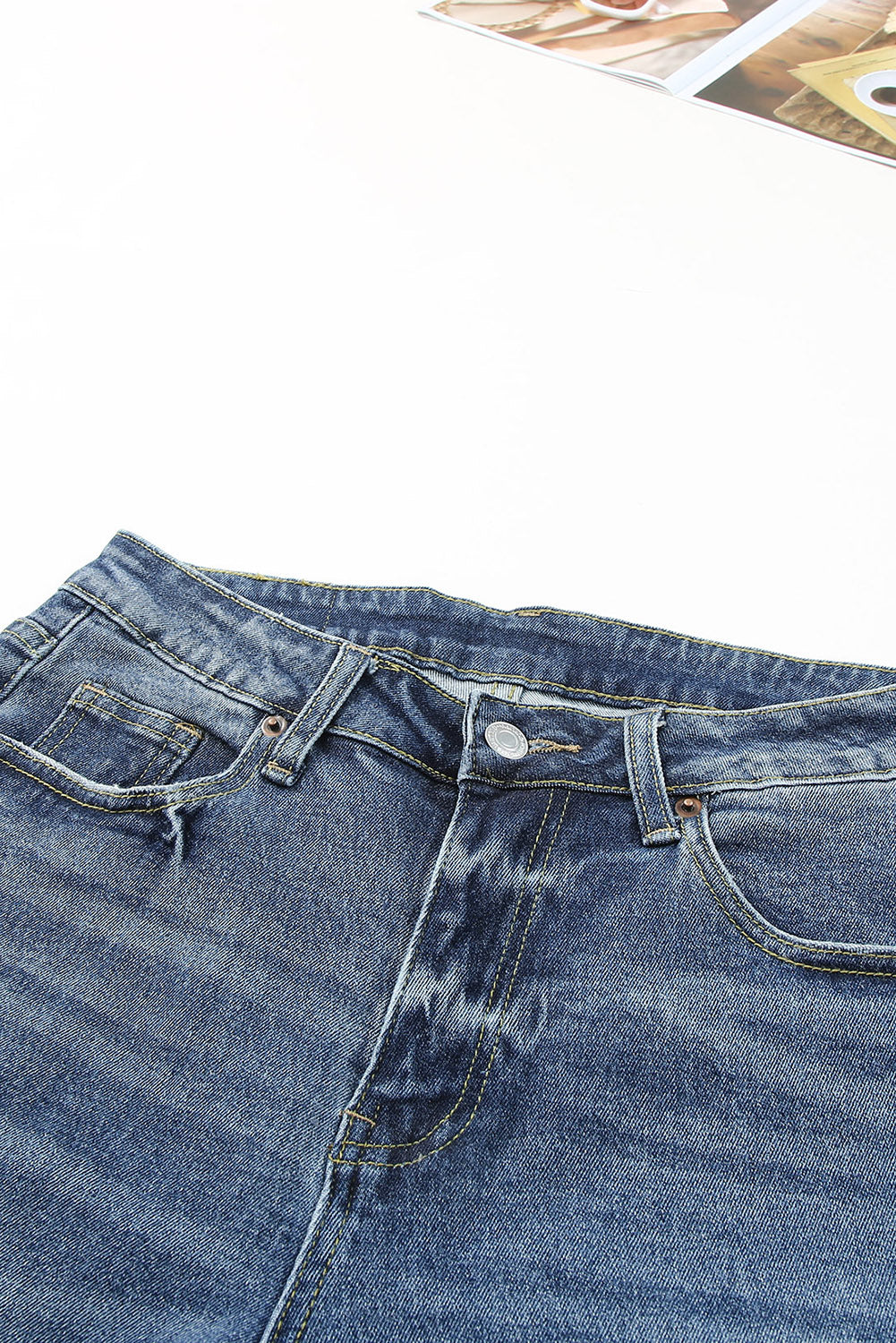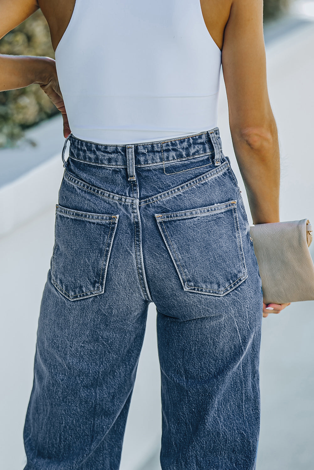 Sky Blue High Rise Ripped Straight Legs Loose Jeans