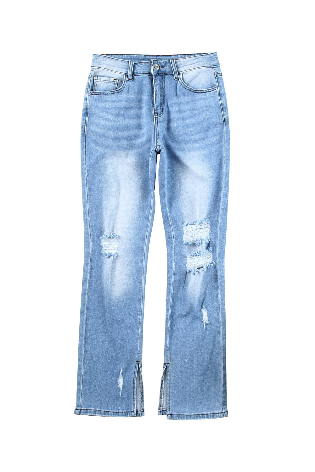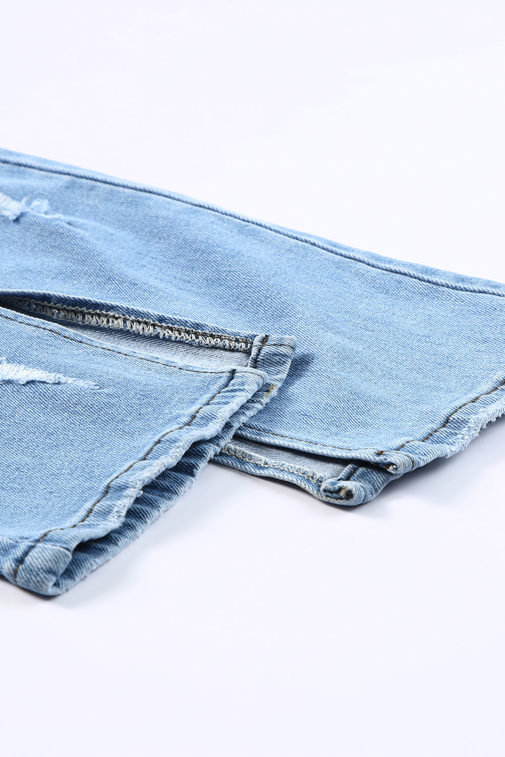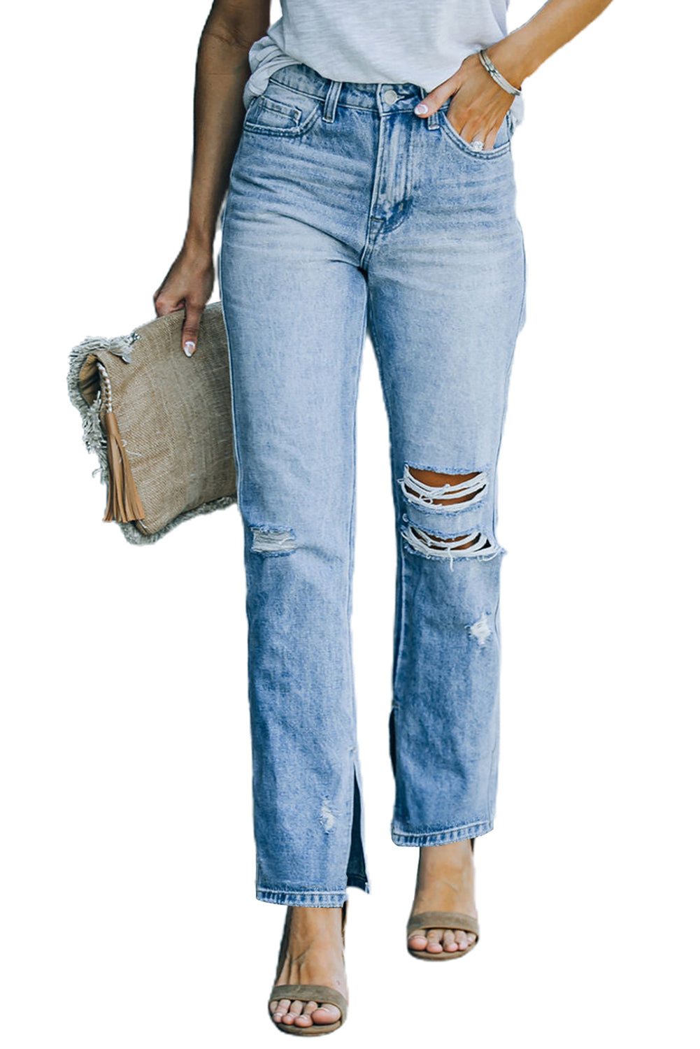 Sky Blue Side Splits Ripped Straight Leg High Waist Jeans
