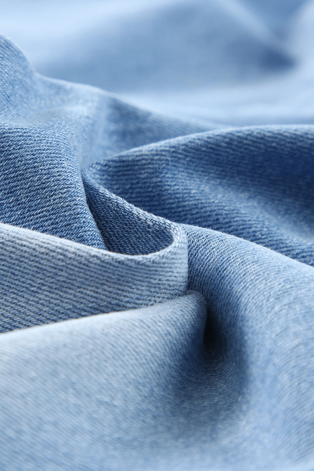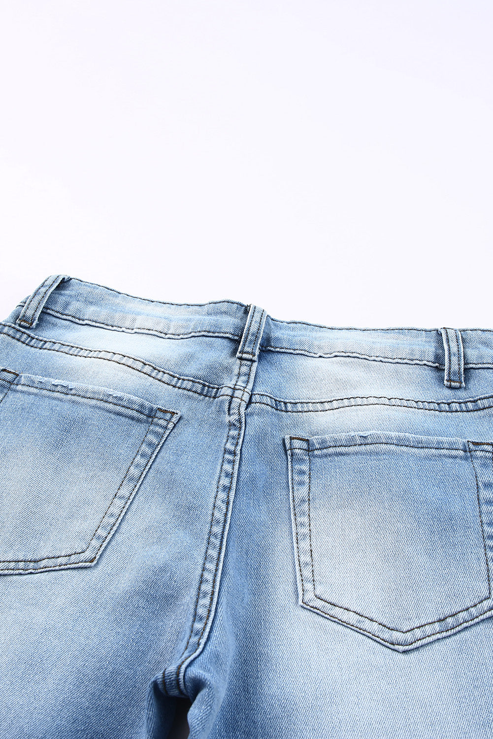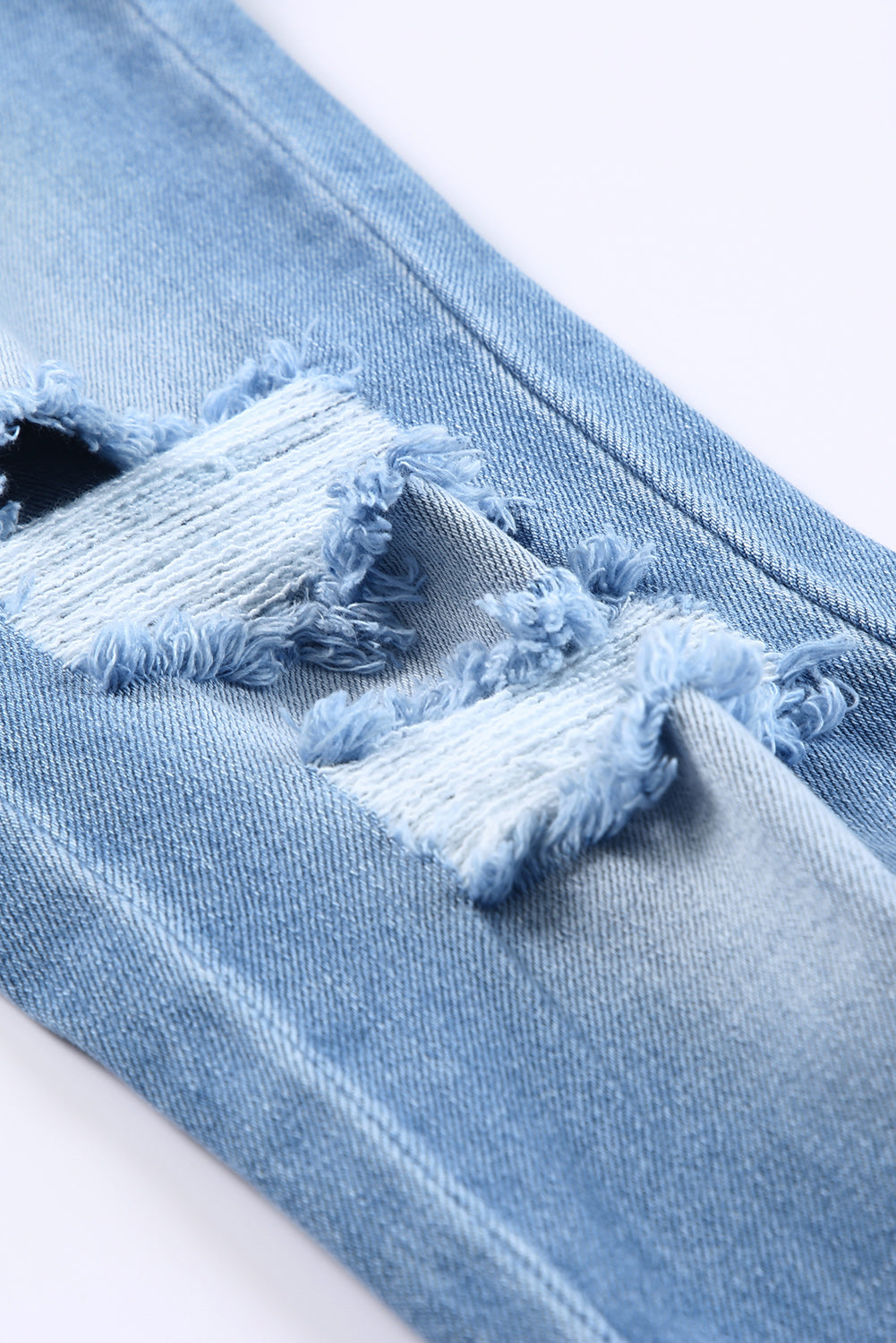 Sky Blue Side Splits Ripped Straight Leg High Waist Jeans