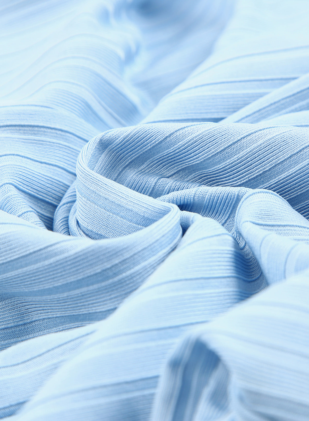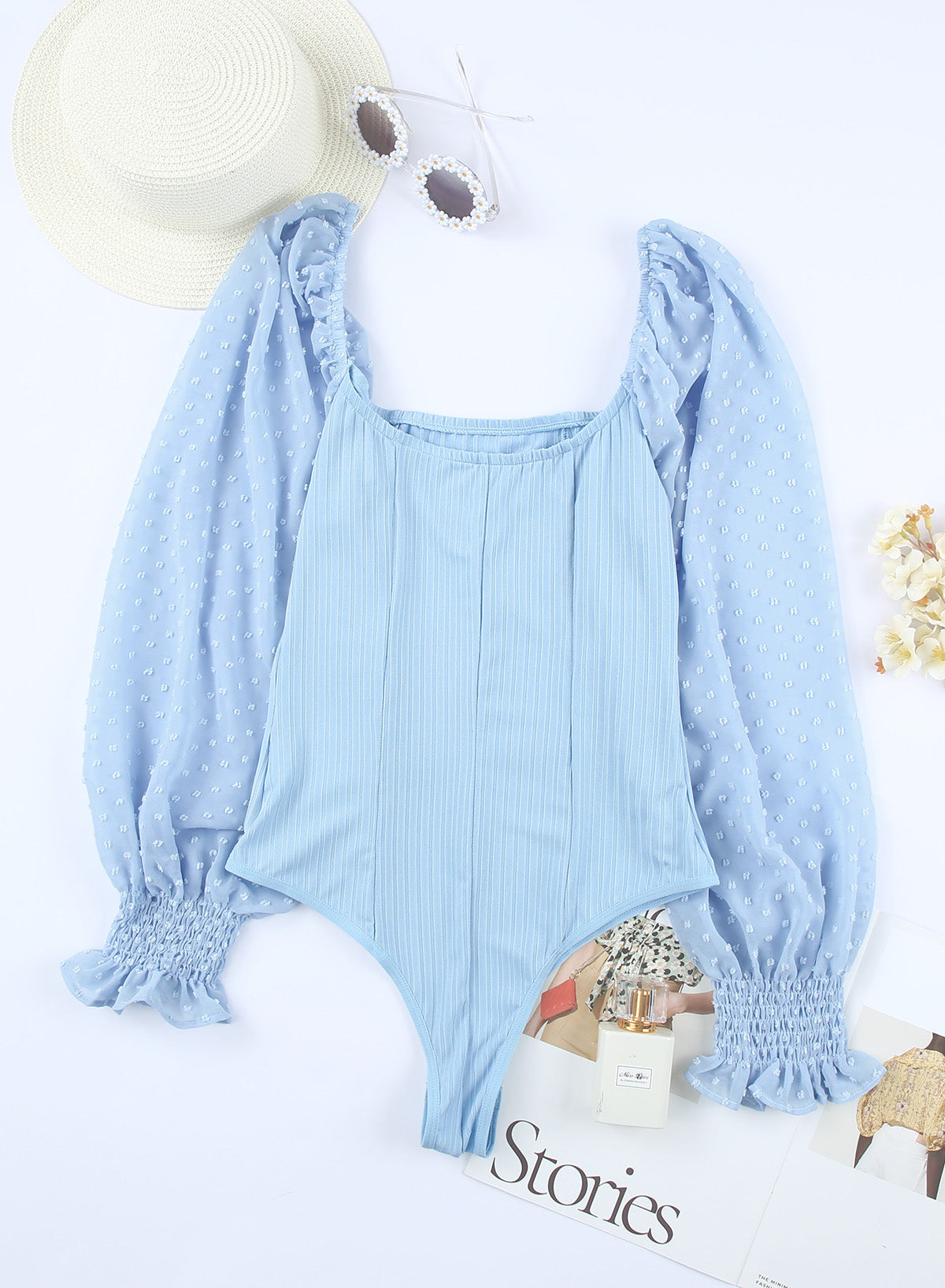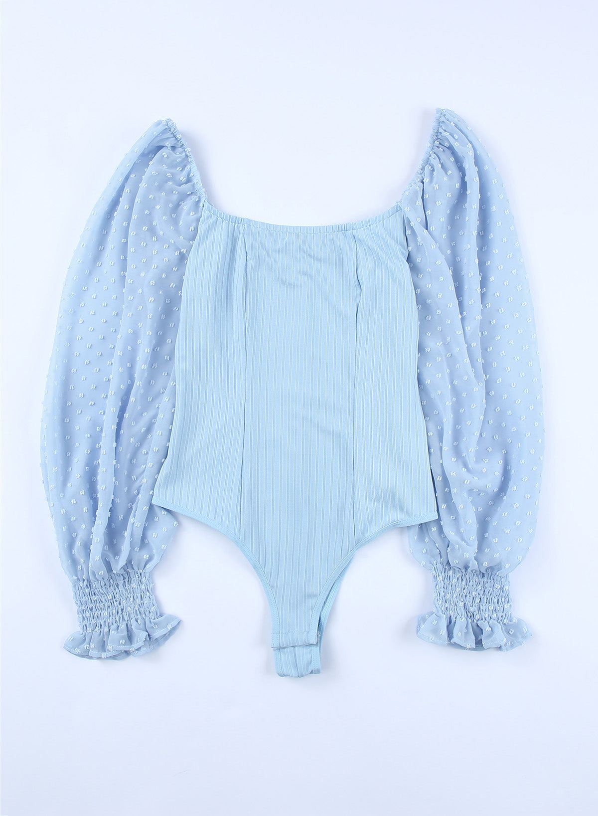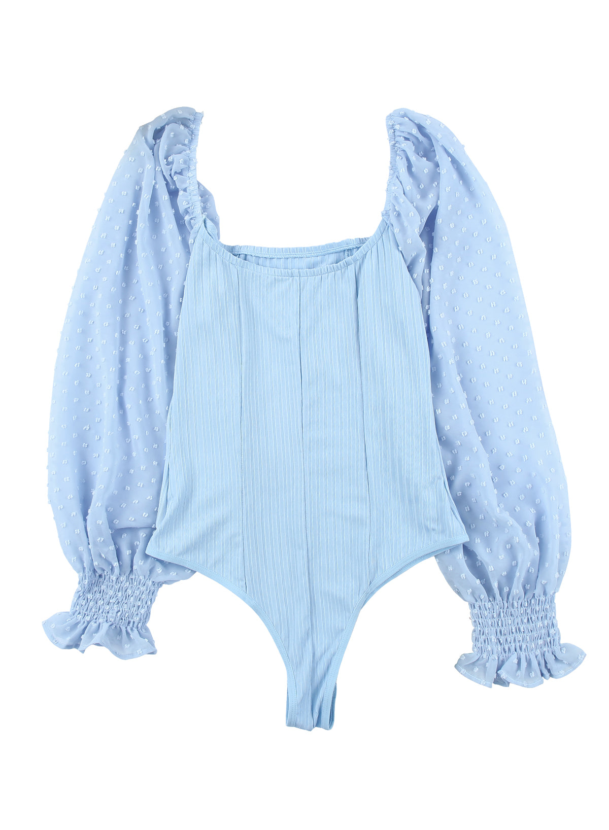 Sky Blue Solid Swiss Dot Ribbed Puff Sleeve Bodysuit
